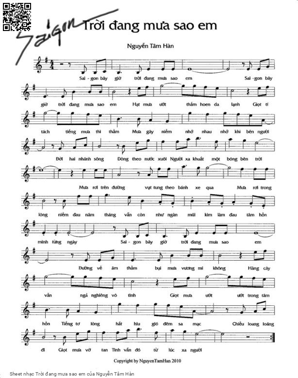 Nguyễn Tâm Hàn Sài Gòn bây giờ trời đang mưa sao em Sài Gòn bây giờ trời đang mưa sao em [PDF] [Sheet] [Lyrics] [Mp4/Midi]