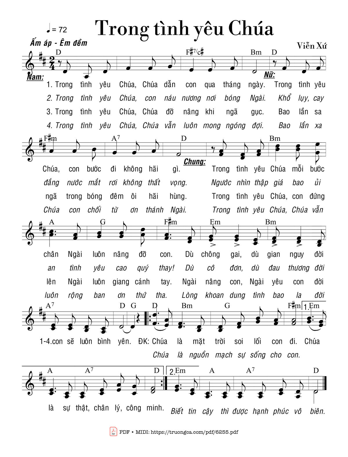 Viễn Xứ Trong tình yêu Chúa Chúa dẫn con qua tháng ngày [PDF] [Sheet] [Lyrics] [Mp4/Midi]