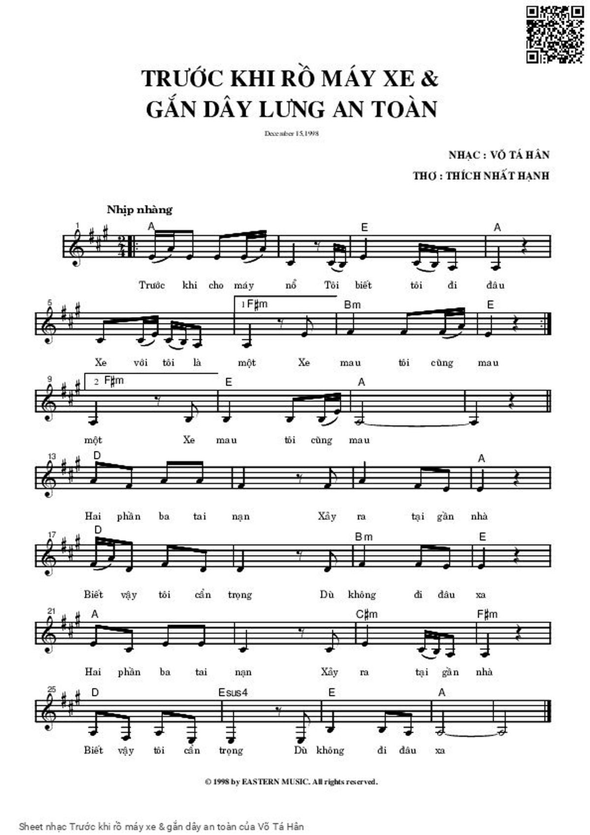 Võ Tá Hân Trước khi cho máy nổ Tôi biết tôi đi đâu [PDF] [Sheet] [Lyrics] [Mp4/Midi]