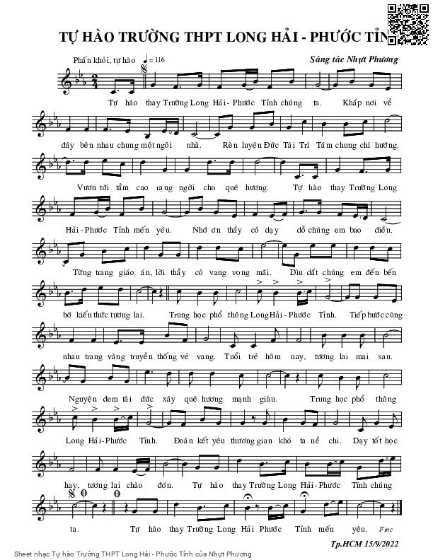 Nhựt Phương Tự hào thay Trường Long Hải Phước Tỉnh chúng ta [PDF] [Sheet] [Lyrics] [Mp4/Midi]