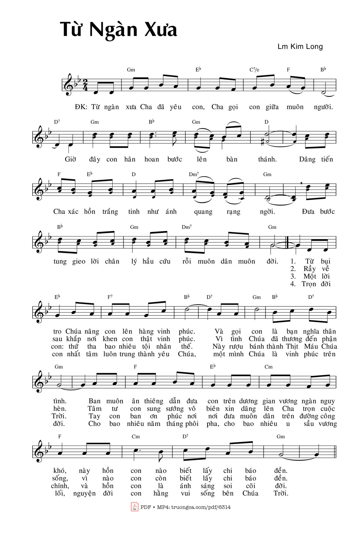 Lm. Kim Long Từ ngàn xưa Cha đã yêu con cha gọi con giữa muôn người [PDF] [Sheet] [Lyrics] [Mp4/Midi]