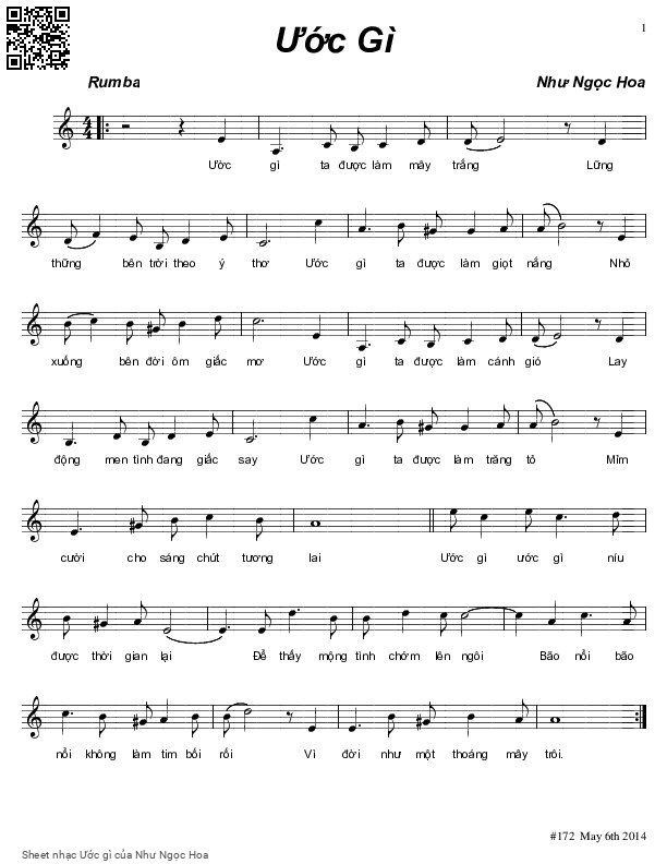 Như Ngọc Hoa Ước gì ta được làm mây trắng Lững thững bên trời theo ý thơ [PDF] [Sheet] [Lyrics] [Mp4/Midi]