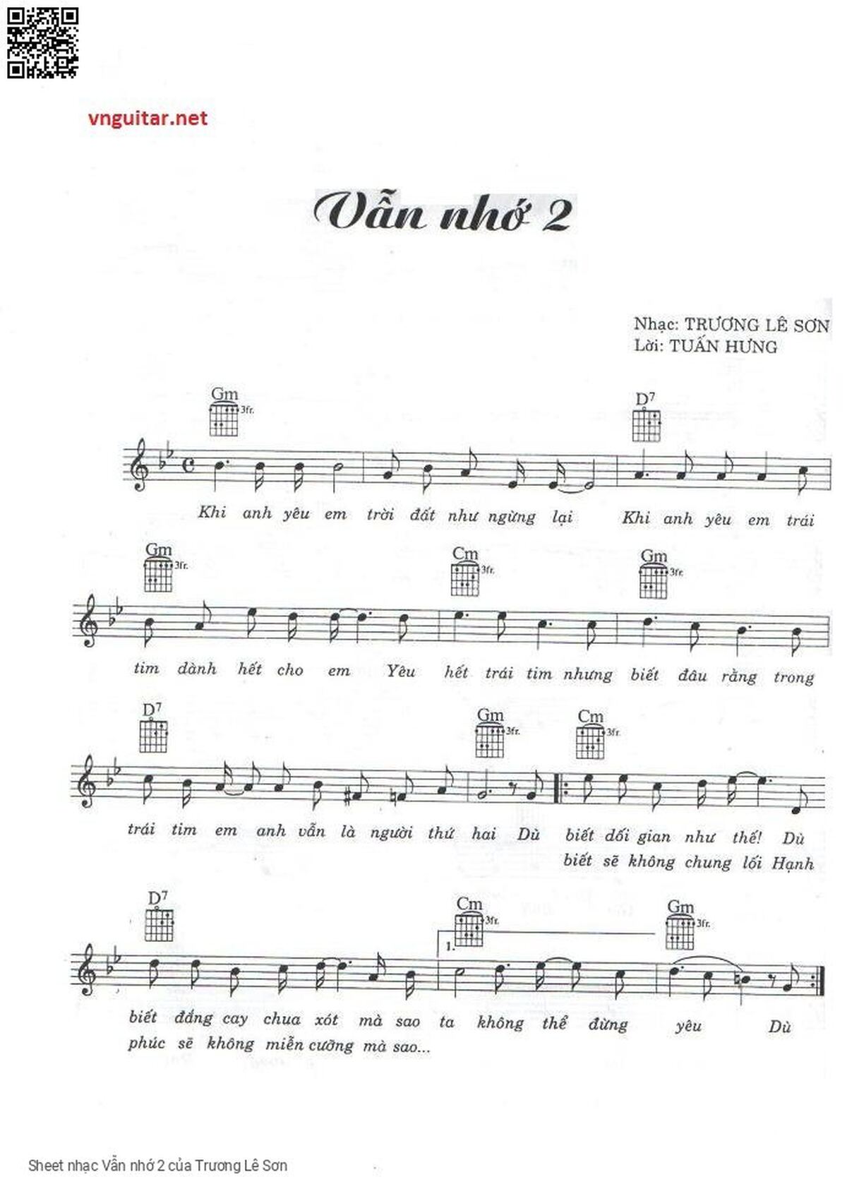 Transposition is the process of moving a song's melody and chords up or down in pitch by a constant interval. The direction of the transposition tool is indicated by a plus (+) sign for up and a minus (-) sign for down. Hover mouse over chords signs to see the chords chart of Vẫn nhớ 2 song.