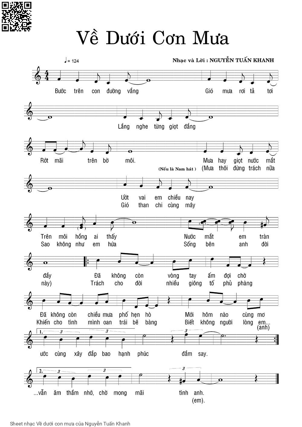 Nguyễn Tuấn Khanh Bước trên con đường vắng Gió mưa rơi tả tơi [PDF] [Sheet] [Lyrics] [Mp4/Midi]
