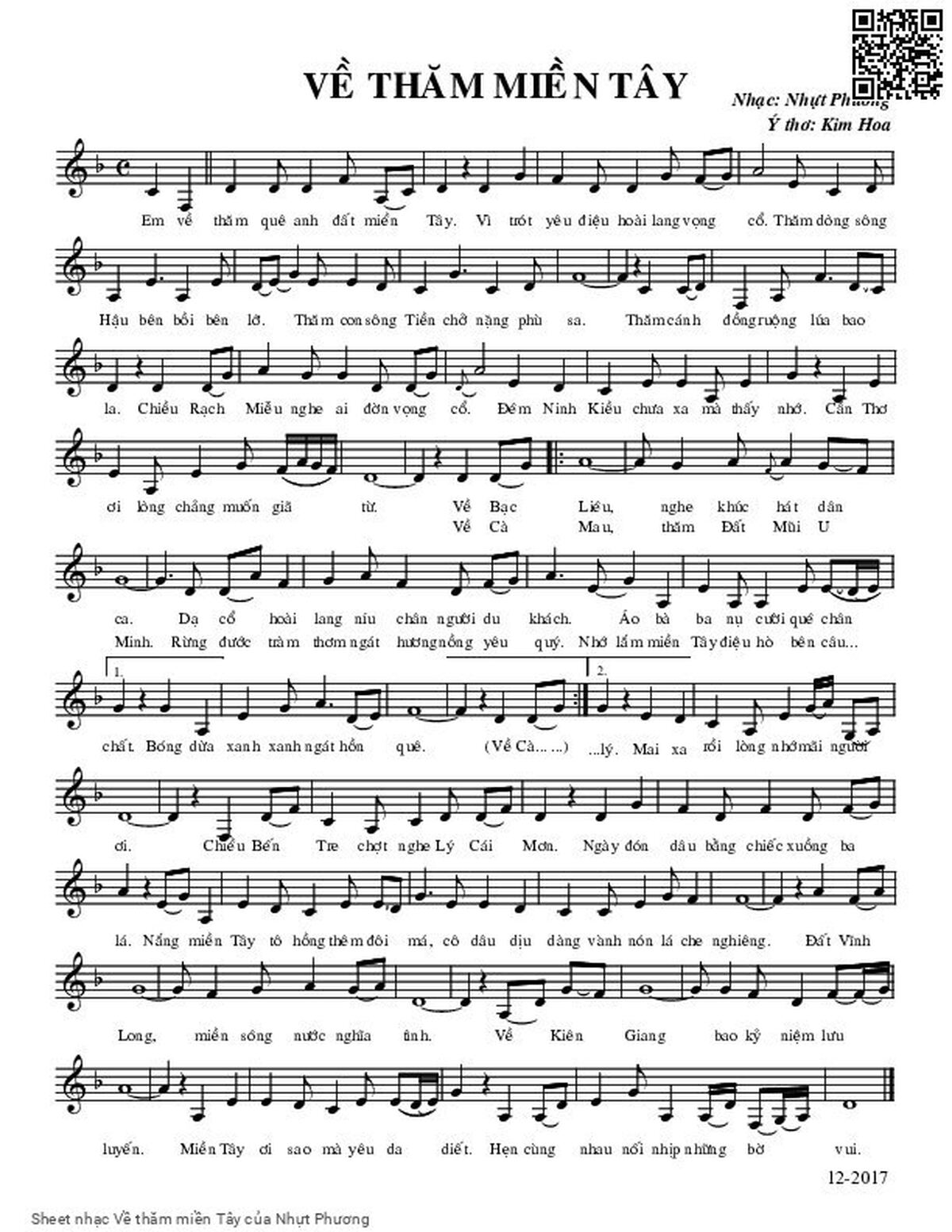 Nhựt Phương Em về thăm quê anh đất miền Tây Vì trót yêu điệu hoài lang vọng cổ [PDF] [Sheet] [Lyrics] [Mp4/Midi]