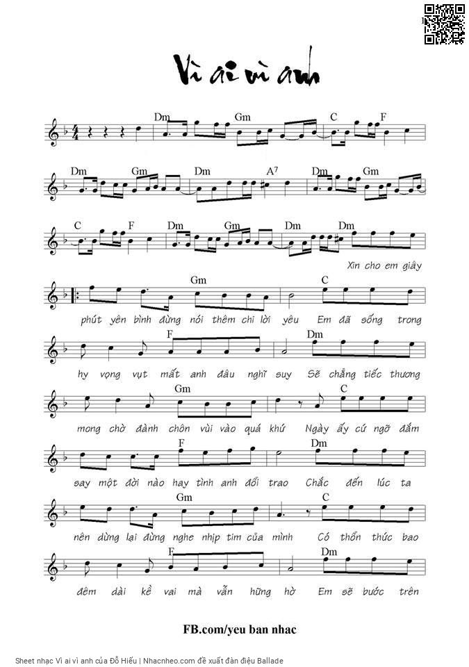 Đỗ Hiếu Vòng hợp âm Xin cho em giây phút yên bình [PDF] [Sheet] [Lyrics] [Mp4/Midi]