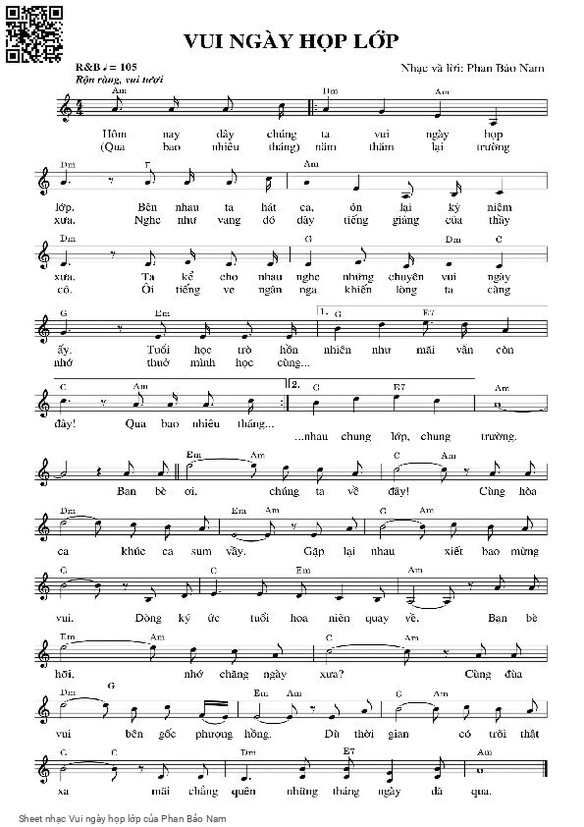 Phan Bảo Nam Hôm nay đây chúng ta vui ngày họp lớp [PDF] [Sheet] [Lyrics] [Mp4/Midi]