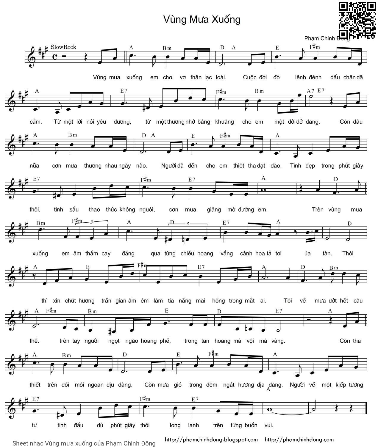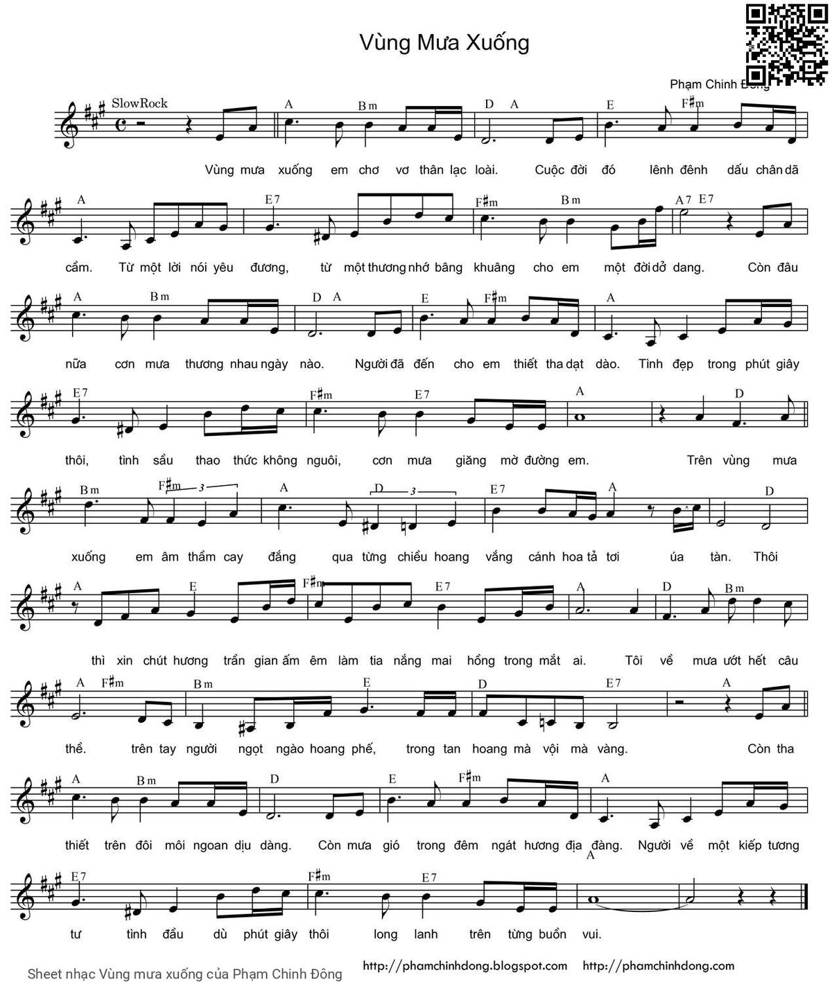 Phạm Chinh Đông Vùng mưa xuống em chơ vơ thân lạc loài [PDF] [Sheet] [Lyrics] [Mp4/Midi]
