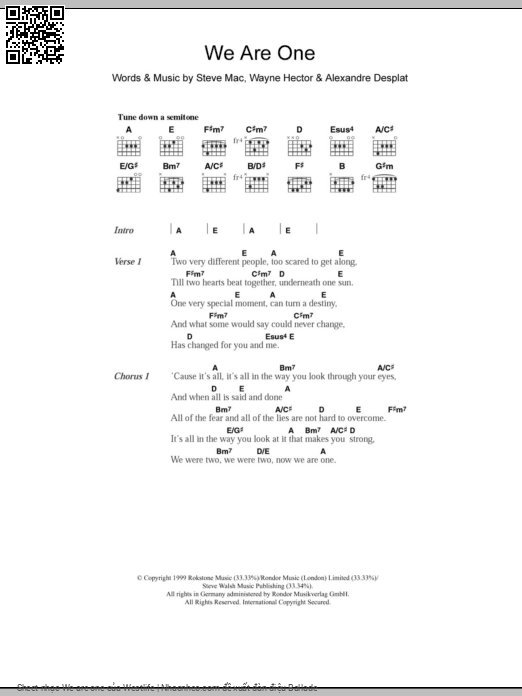The Videos/audios We are one by Westlife were embed from Youtube, Musescore or the other 3rd links. Videos are subject to 3rd's copyright control and may be removed by YouTube's copyright rules and 3rd's policies or maybe included advertisements. If you cannot access to these songs, this mean that have been removed.