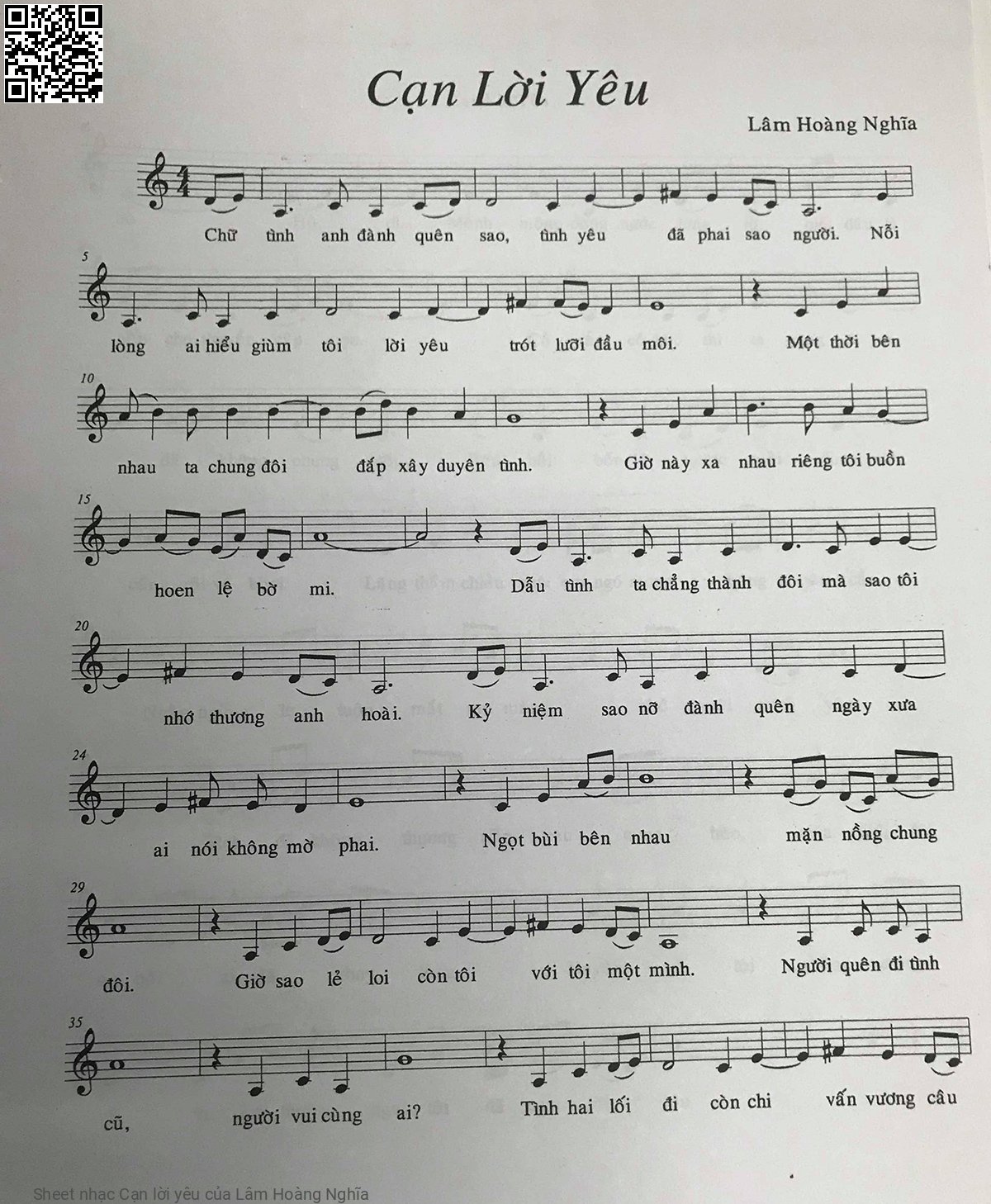 Lâm Hoàng Nghĩa Chữ tình anh đành quên sao tình yêu đã phai sao người [PDF] [Sheet] [Lyrics] [Mp4/Midi]