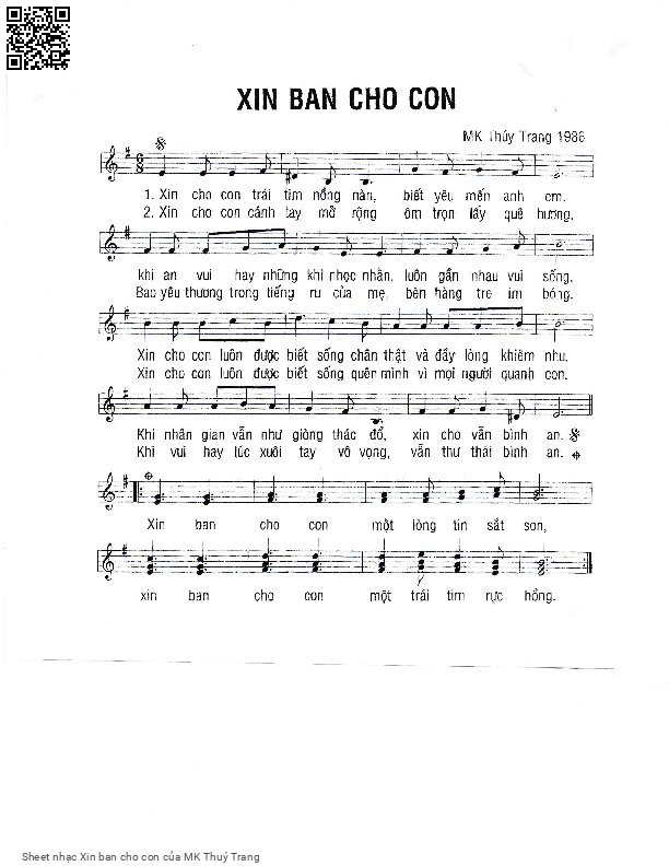 MK Thuý Trang Xin cho con trái tim nồng nàn biết yêu mến anh em [PDF] [Sheet] [Lyrics] [Mp4/Midi]