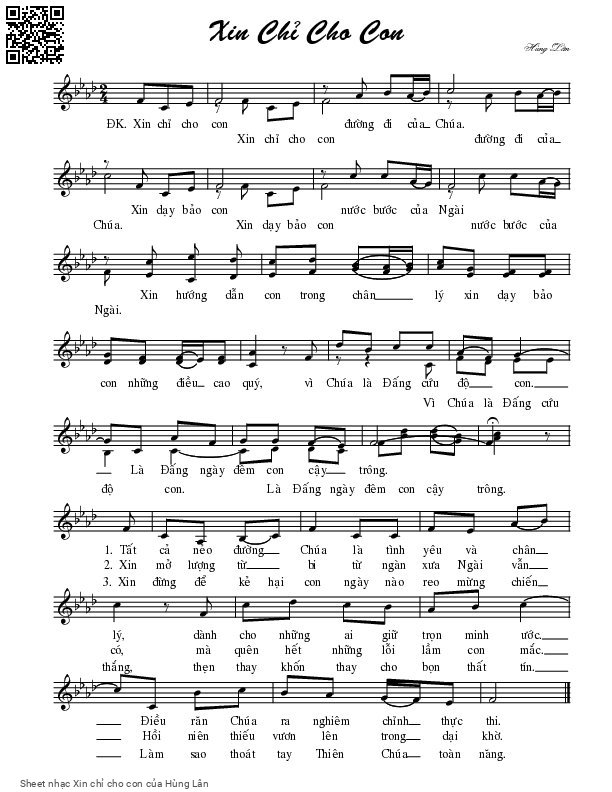 Hùng Lân Xin chỉ cho con Đường đi của Chúa [PDF] [Sheet] [Lyrics] [Mp4/Midi]