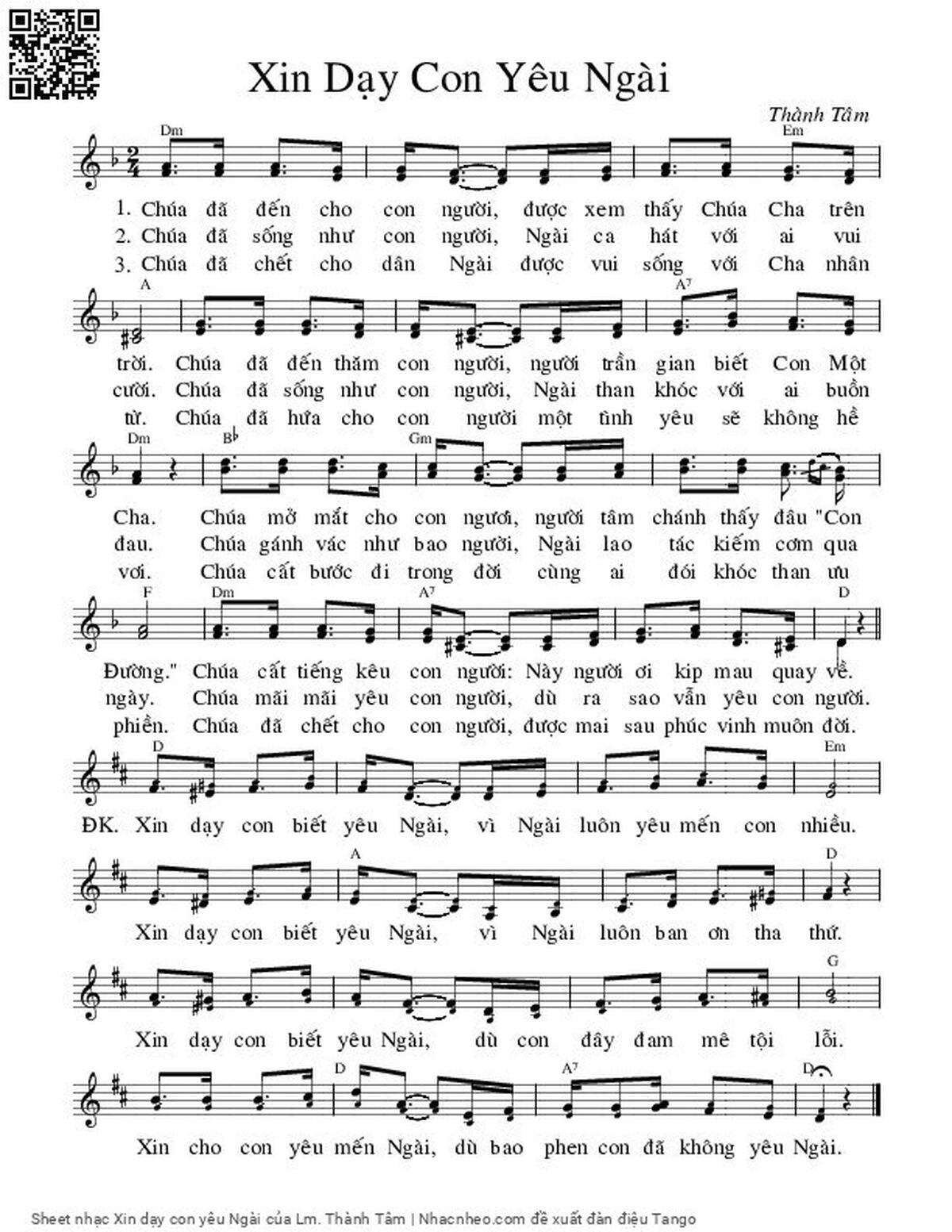 Sheet PDF with the same name Xin dạy con yêu Ngài: