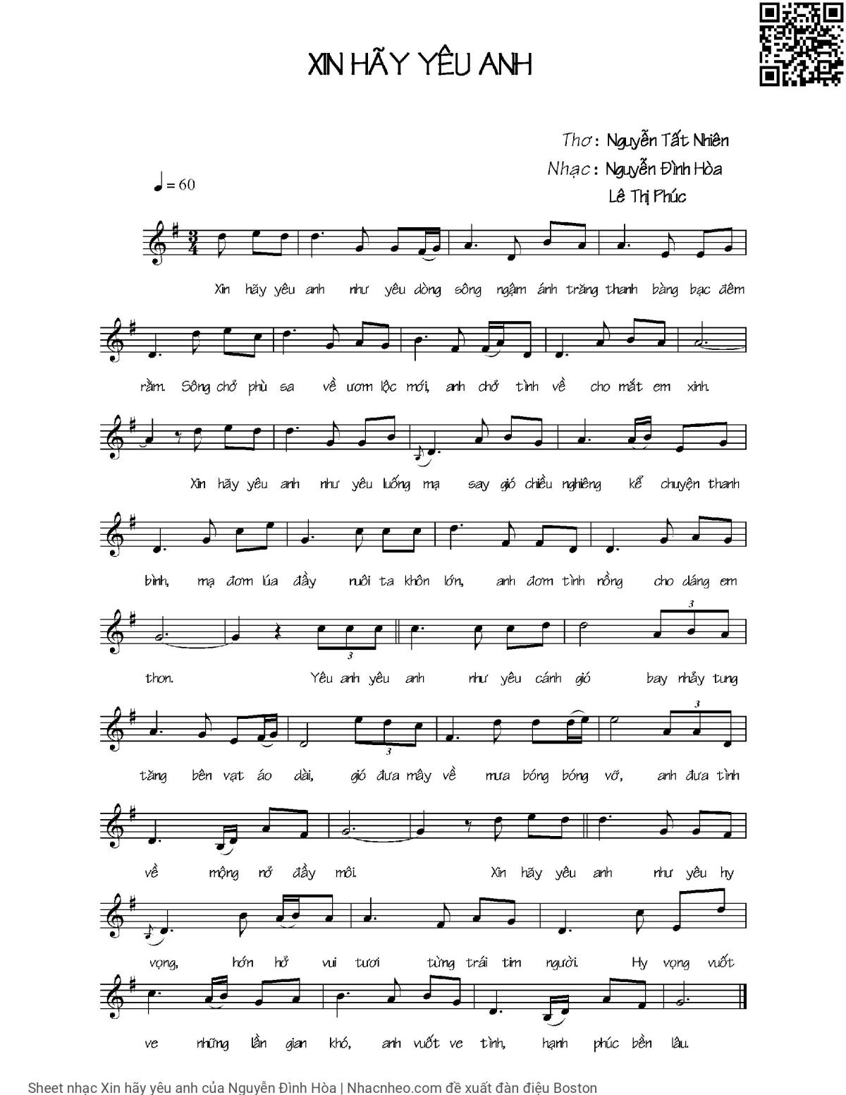 The Videos/audios Xin hãy yêu anh by Nguyễn Đình Hòa were embed from Youtube, Musescore or the other 3rd links. Videos are subject to 3rd's copyright control and may be removed by YouTube's copyright rules and 3rd's policies or maybe included advertisements. If you cannot access to these songs, this mean that have been removed.