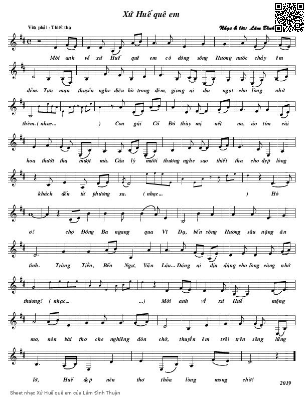Lâm Đình Thuận Mời anh về xứ Huế quê em Có dòng sông Hương nước chảy êm đềm [PDF] [Sheet] [Lyrics] [Mp4/Midi]