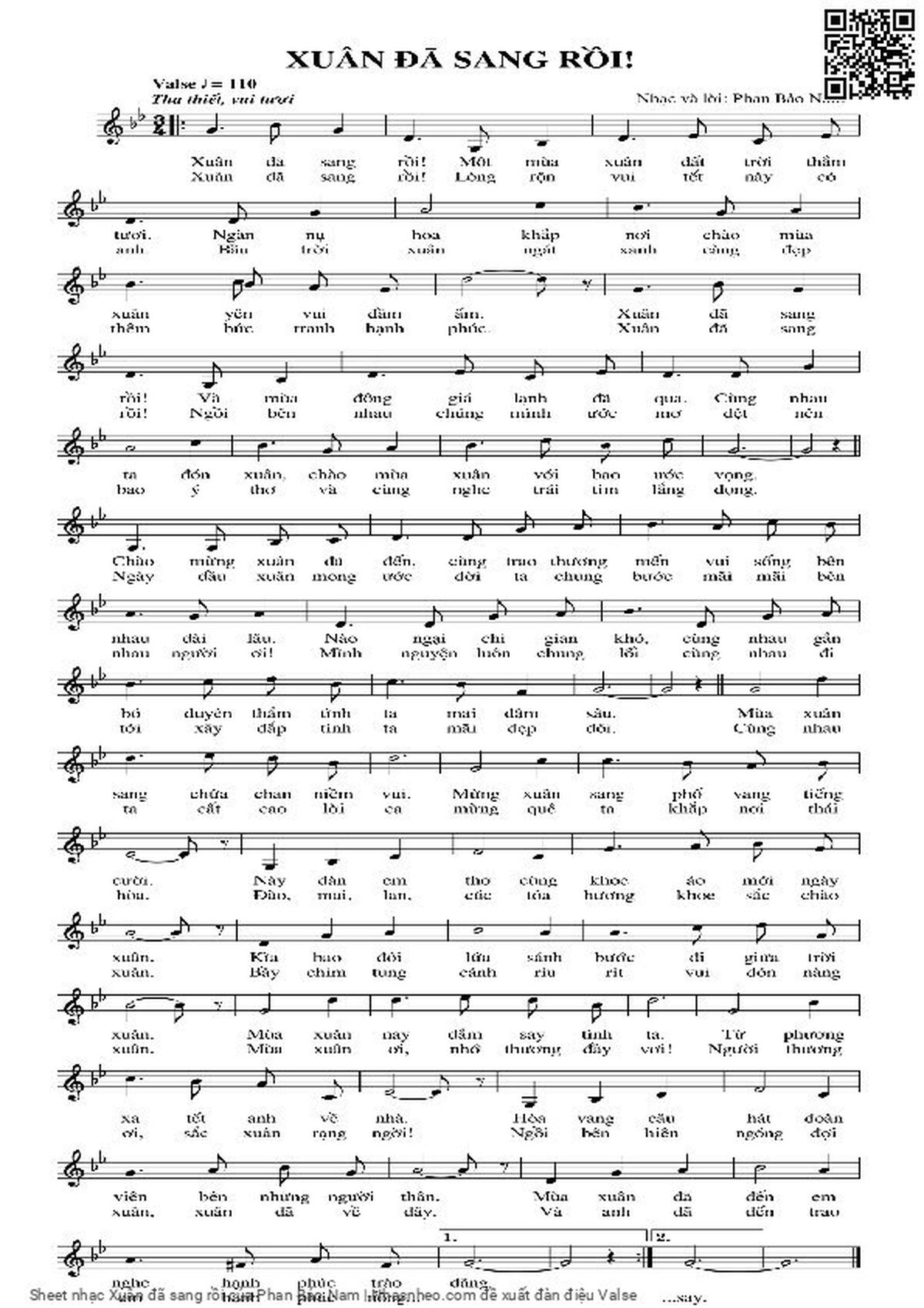 Phan Bảo Nam Xuân đã sang rồi Một mùa xuân đất trời thắm tươi [PDF] [Sheet] [Lyrics] [Mp4/Midi]