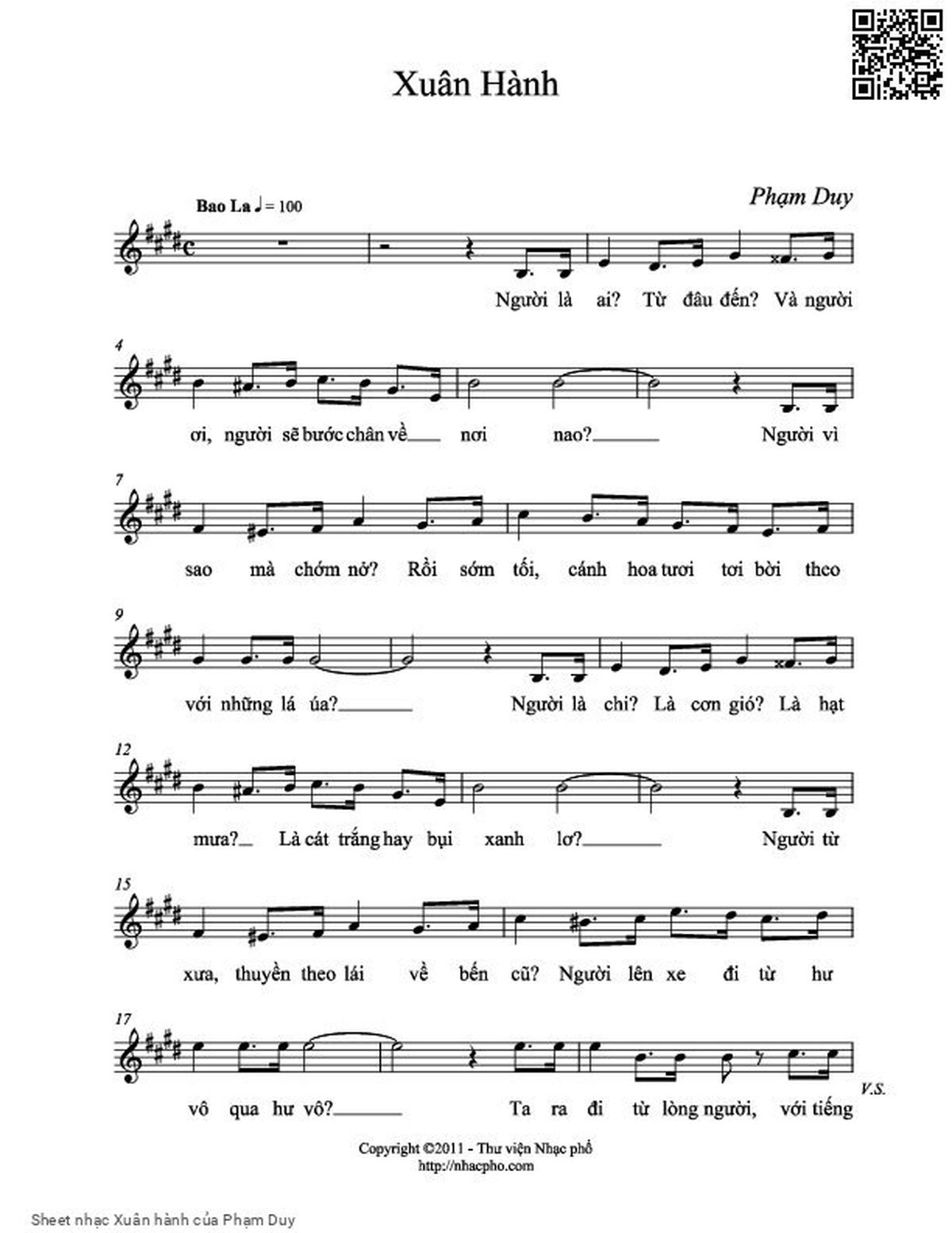 The Videos/audios Xuân hành by Phạm Duy were embed from Youtube, Musescore or the other 3rd links. Videos are subject to 3rd's copyright control and may be removed by YouTube's copyright rules and 3rd's policies or maybe included advertisements. If you cannot access to these songs, this mean that have been removed.