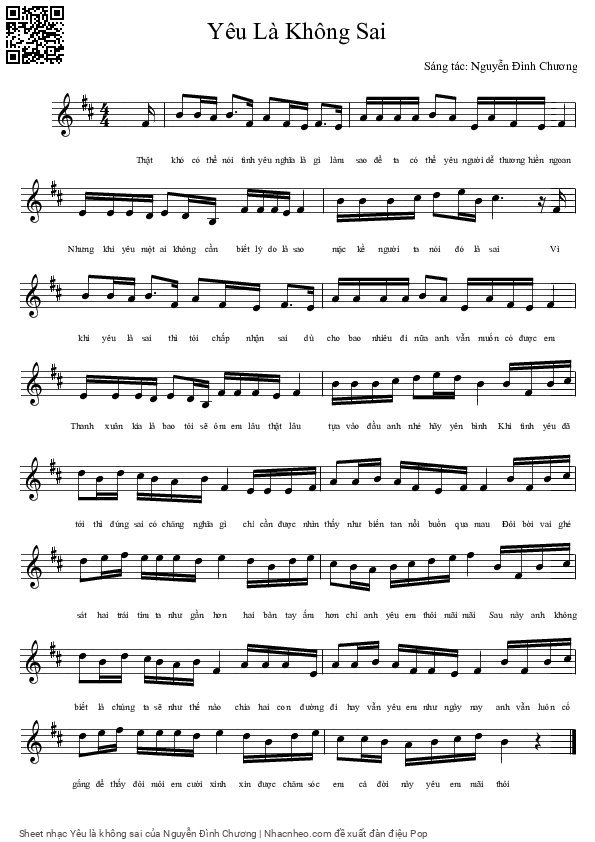 The Videos/audios Yêu là không sai by Nguyễn Đình Chương were embed from Youtube, Musescore or the other 3rd links. Videos are subject to 3rd's copyright control and may be removed by YouTube's copyright rules and 3rd's policies or maybe included advertisements. If you cannot access to these songs, this mean that have been removed.