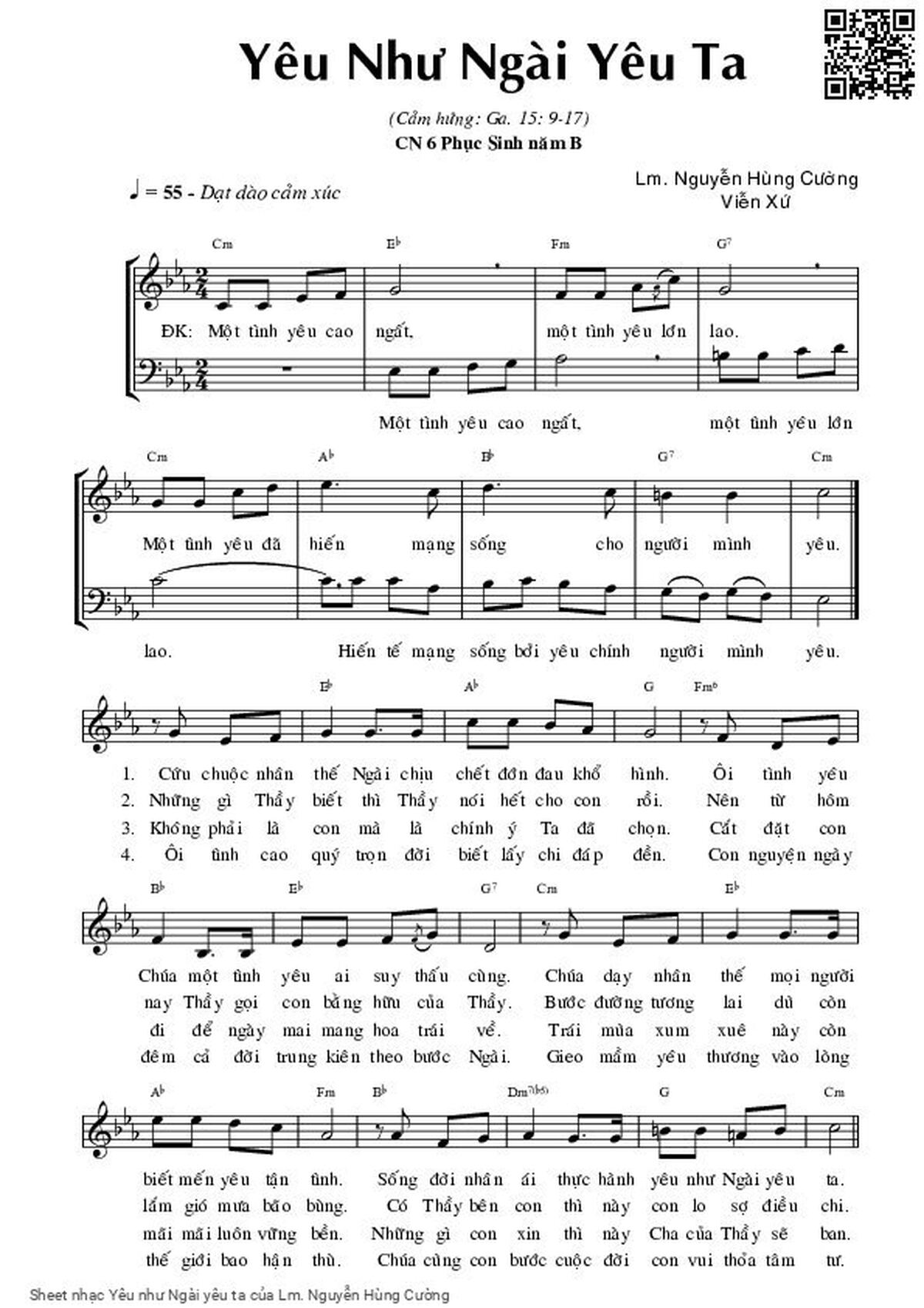 Lm. Nguyễn Hùng Cường Một tình yêu cao ngất một tình yêu lớn lao [PDF] [Sheet] [Lyrics] [Mp4/Midi]