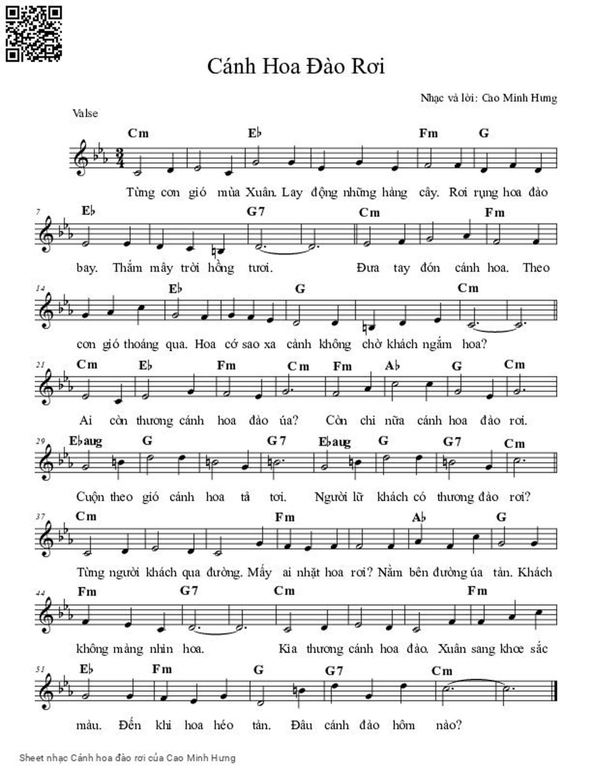 Cao Minh Hưng Từng cơn gió mùa Xuân Lay động những hàng cây [PDF] [Sheet] [Lyrics] [Mp4/Midi]