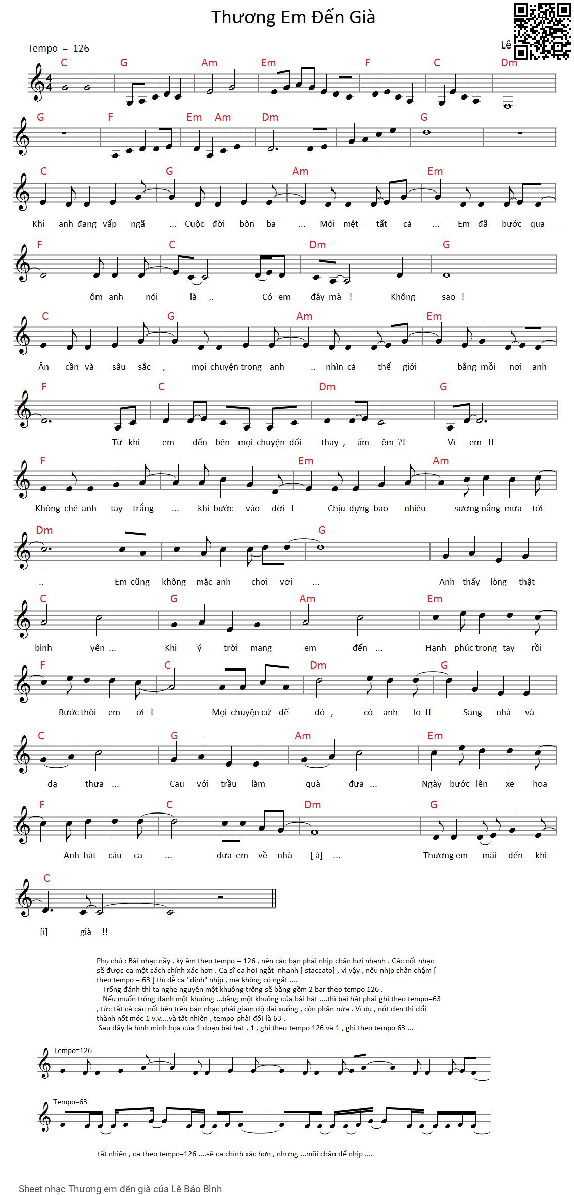 Transposition is the process of moving a song's melody and chords up or down in pitch by a constant interval. The direction of the transposition tool is indicated by a plus (+) sign for up and a minus (-) sign for down. Hover mouse over chords signs to see the chords chart of Thương em đến già song.