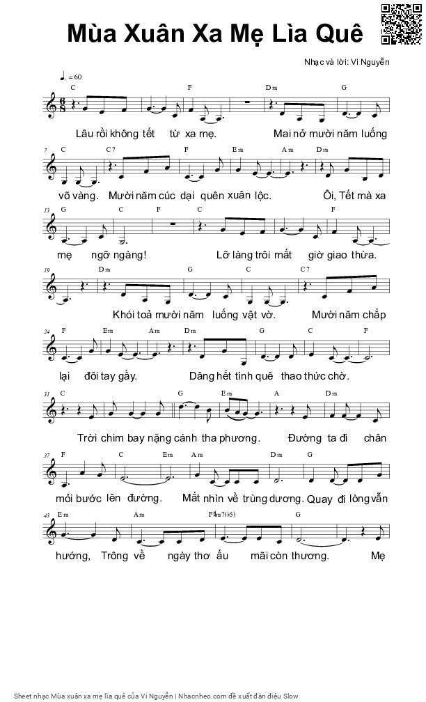 Vi Nguyễn Lâu rồi không tết từ xa mẹ Mai nở mười năm luống võ vàng [PDF] [Sheet] [Lyrics] [Mp4/Midi]