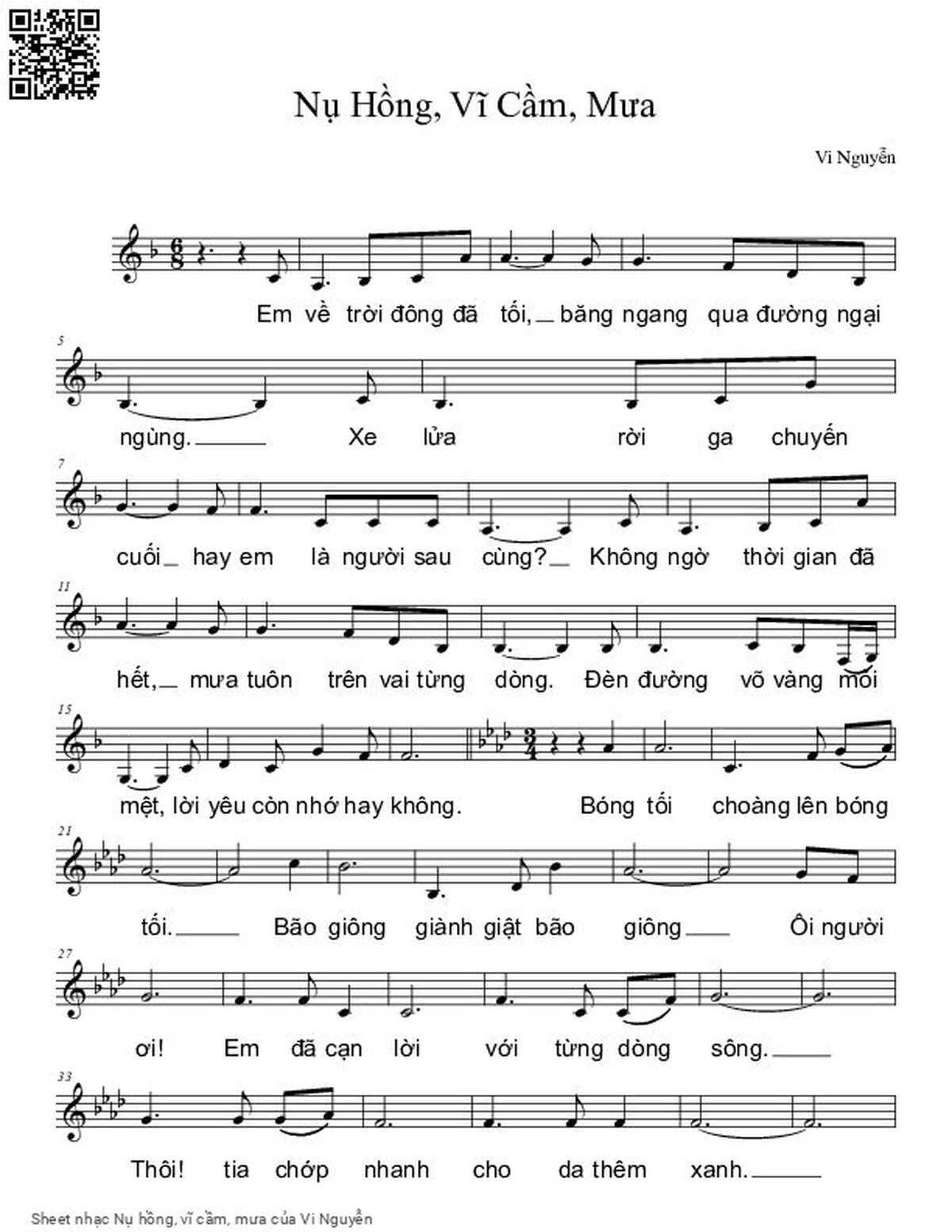Vi Nguyễn Em về trời đông đã tối Băng ngang qua đường ngại ngùng [PDF] [Sheet] [Lyrics] [Mp4/Midi]