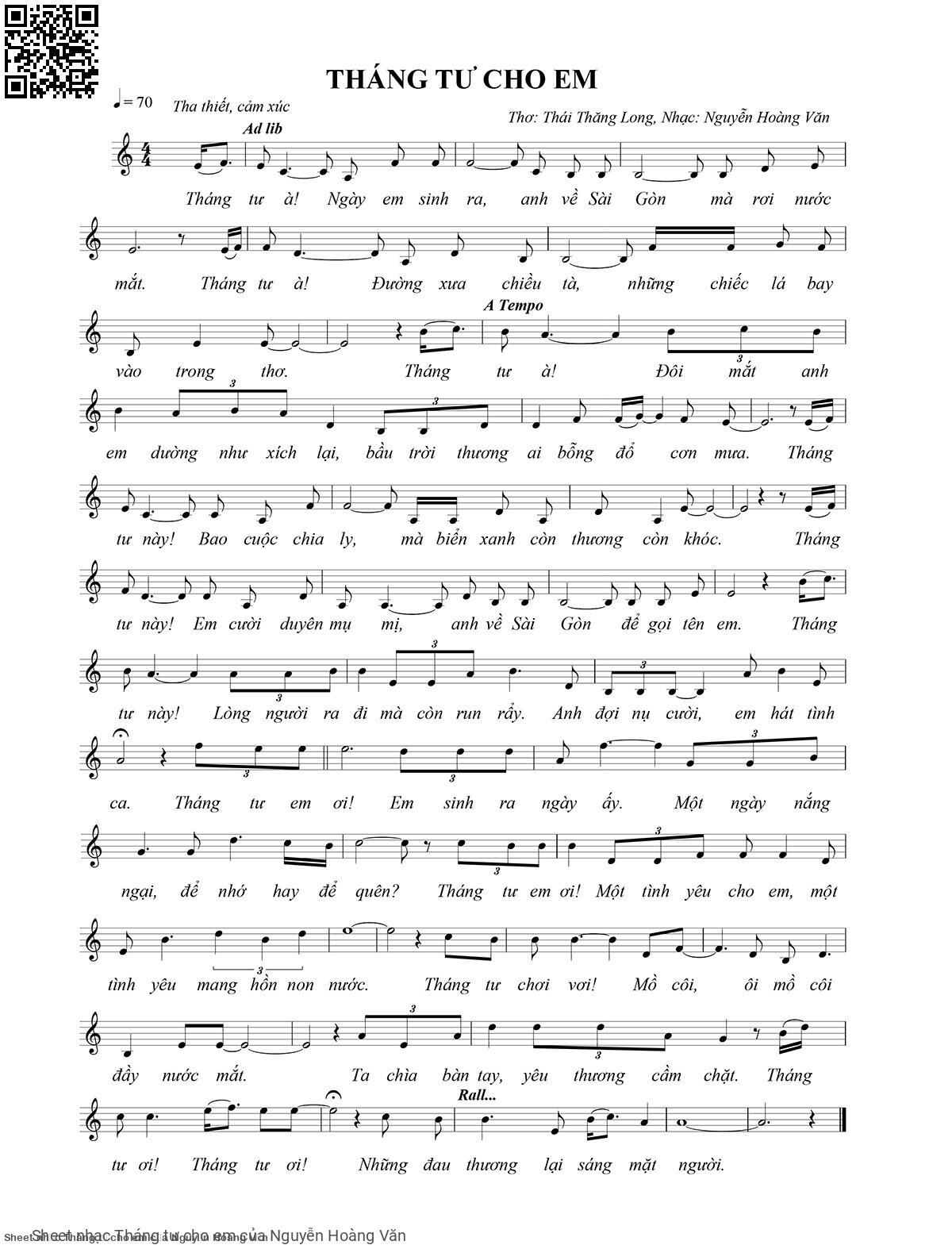 Nguyễn Hoàng Văn Tháng tư à Ngày em sinh ra Anh về Sài Gòn mà rơi nước mắt [PDF] [Sheet] [Lyrics] [Mp4/Midi]