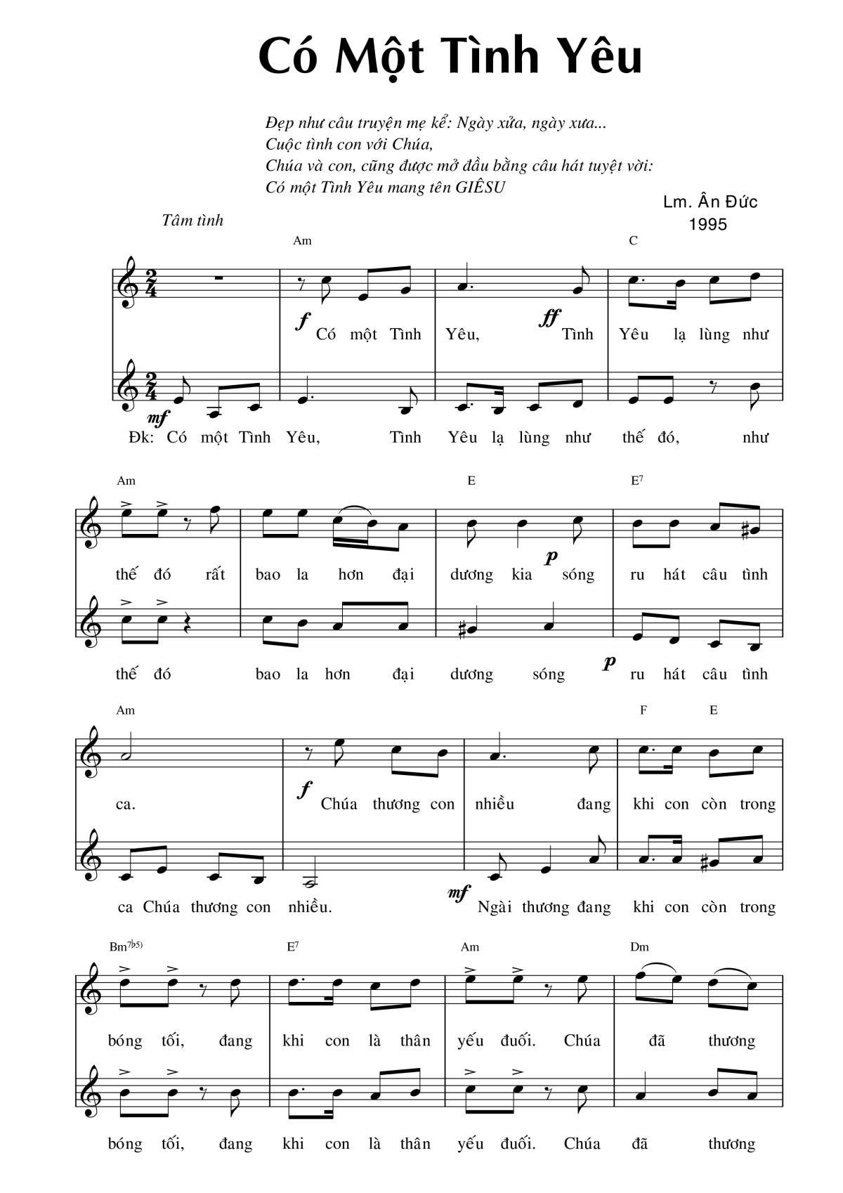 The Videos/audios Có Một Tình Yêu by Lm. Ân Đức were embed from Youtube, Musescore or the other 3rd links. Videos are subject to 3rd's copyright control and may be removed by YouTube's copyright rules and 3rd's policies or maybe included advertisements. If you cannot access to these songs, this mean that have been removed.