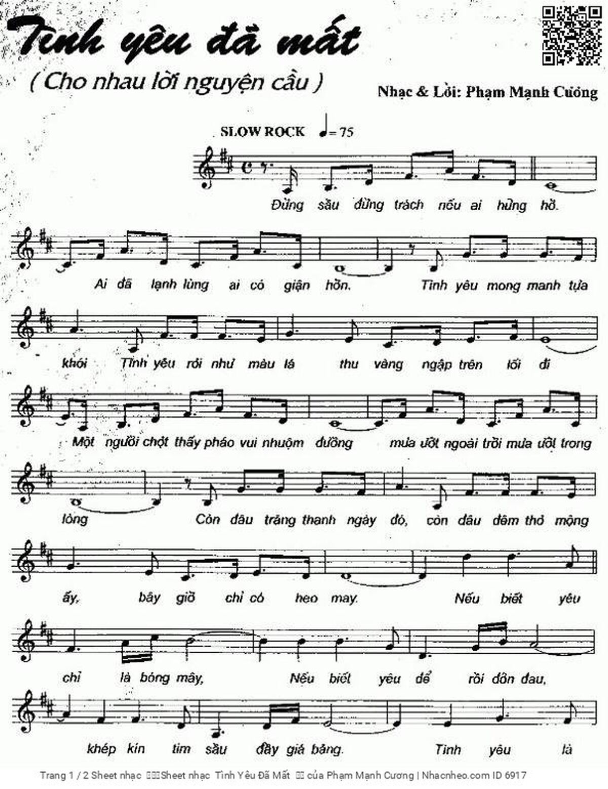 Page 1 of Sheet music PDF Tình Yêu Đã Mất 		 - Phạm Mạnh Cương