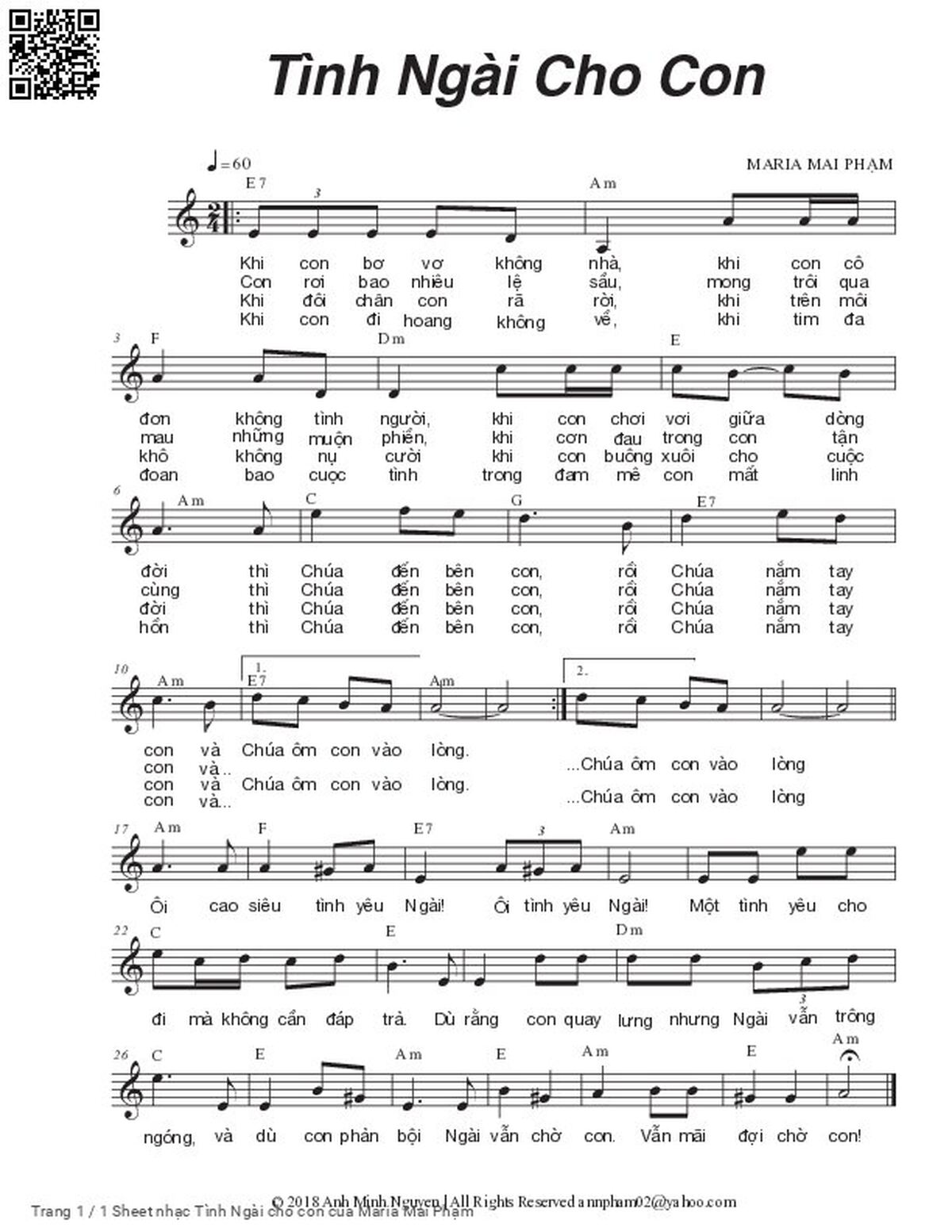 Maria Mai Phạm Khi con bơ vơ không nhà Khi con cô đơn không tình người [PDF] [Sheet] [Lyrics] [Mp4/Midi]