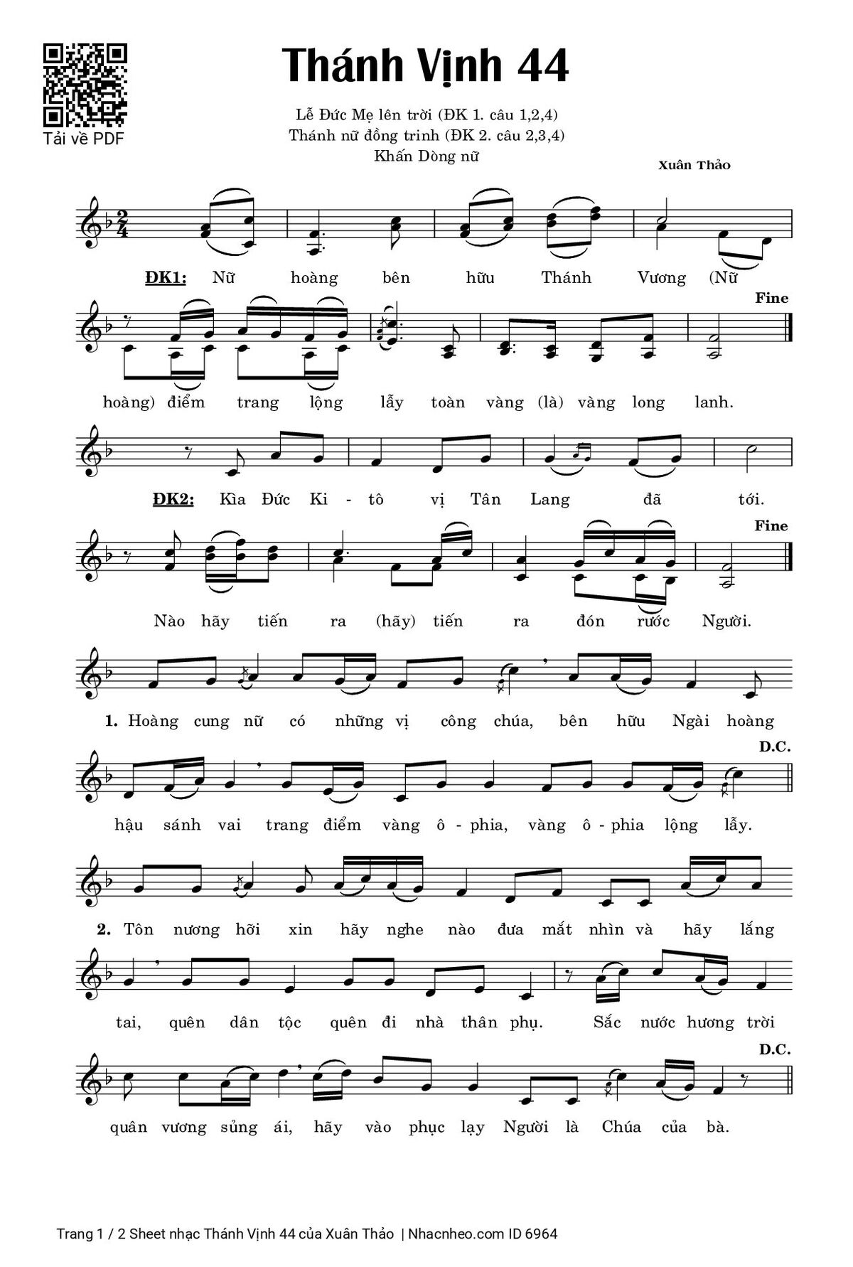 Sheet PDF with the same name Thánh Vịnh 44: