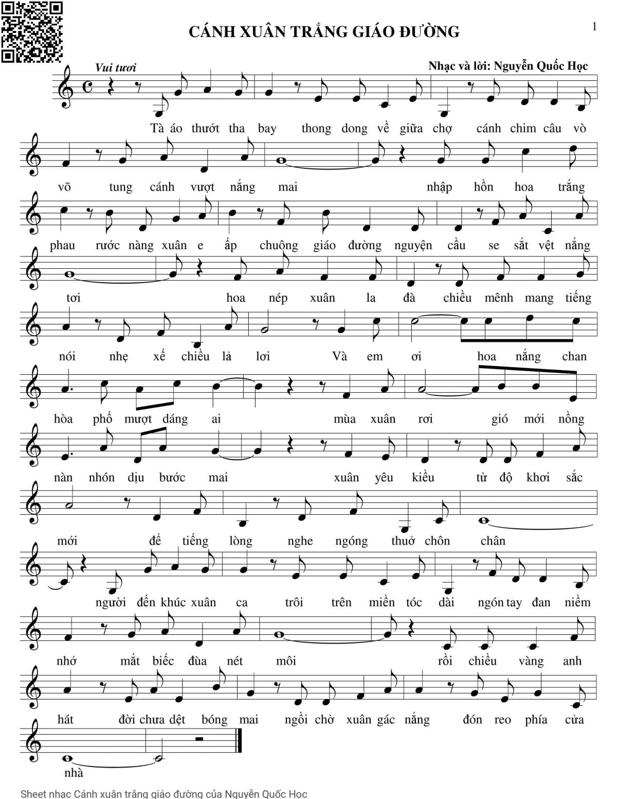 The Videos/audios Cánh xuân trắng giáo đường by Nguyễn Quốc Học were embed from Youtube, Musescore or the other 3rd links. Videos are subject to 3rd's copyright control and may be removed by YouTube's copyright rules and 3rd's policies or maybe included advertisements. If you cannot access to these songs, this mean that have been removed.
