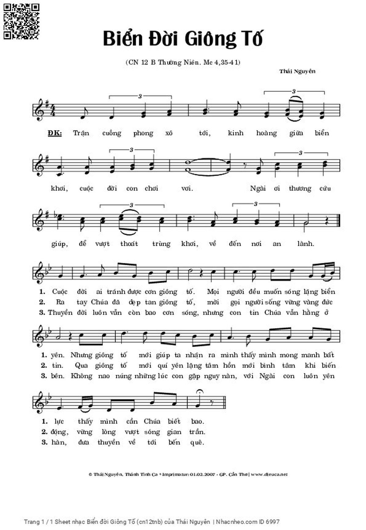 Lm. Thái Nguyên Trận cuồng phong xô tới kinh hoàng giữa biển khơi cuộc đời con chơi vơi [PDF] [Sheet] [Lyrics] [Mp4/Midi]