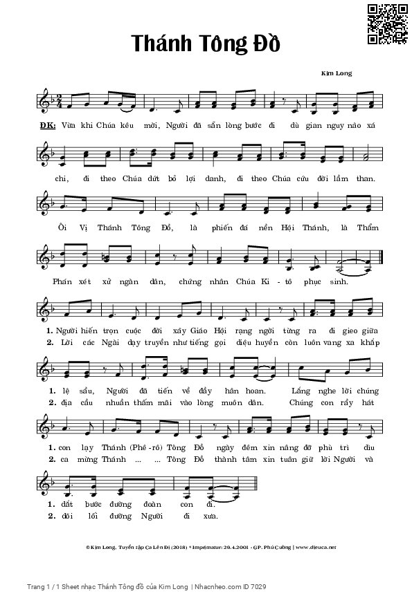 Sheet PDF with the same name Thánh Tông đồ: