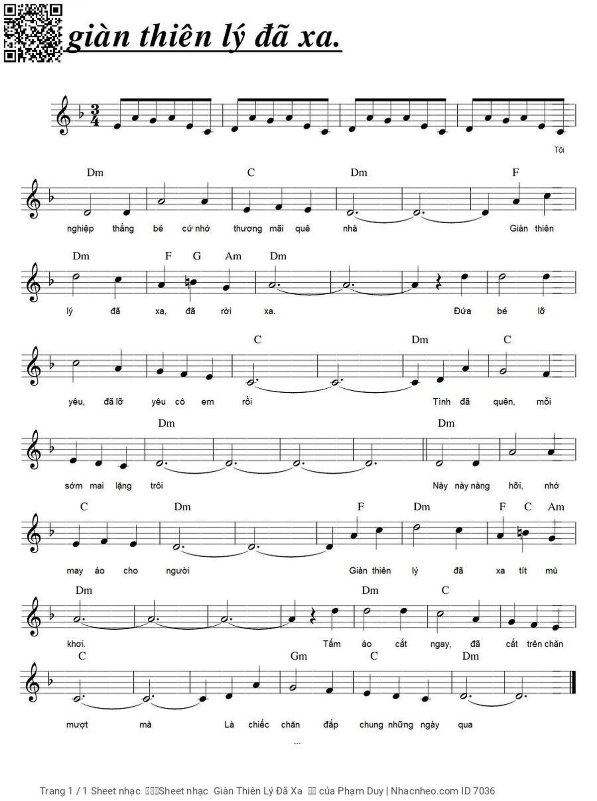 Sheet music Giàn Thiên Lý Đã Xa by Phạm Duy and PDF file was posted here to support you to practice singing perfectly. Sheets with notes and chords are for reference only, for non-commercial purposes only, not involved with earning money by buying and selling. Copyright is belong to song writer/author and copyright owner. Truongca.com do not own any copyrighted content. You can download the high-quality PDF files which contain staffs by PDF link above.