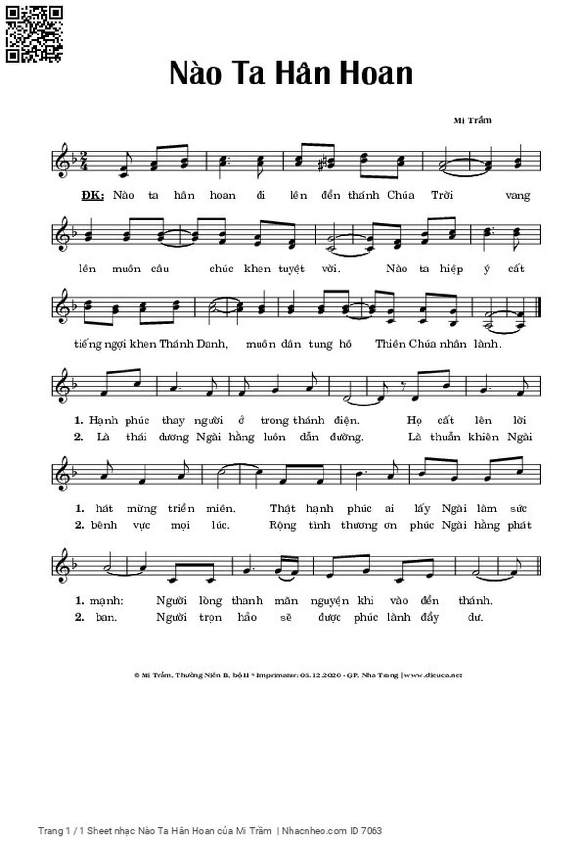 Lm. Mi Trầm Nào ta hân hoan đi lên đền thánh Chúa Trời vang lên muôn câu chúc khen tuyệt [PDF] [Sheet] [Lyrics] [Mp4/Midi]