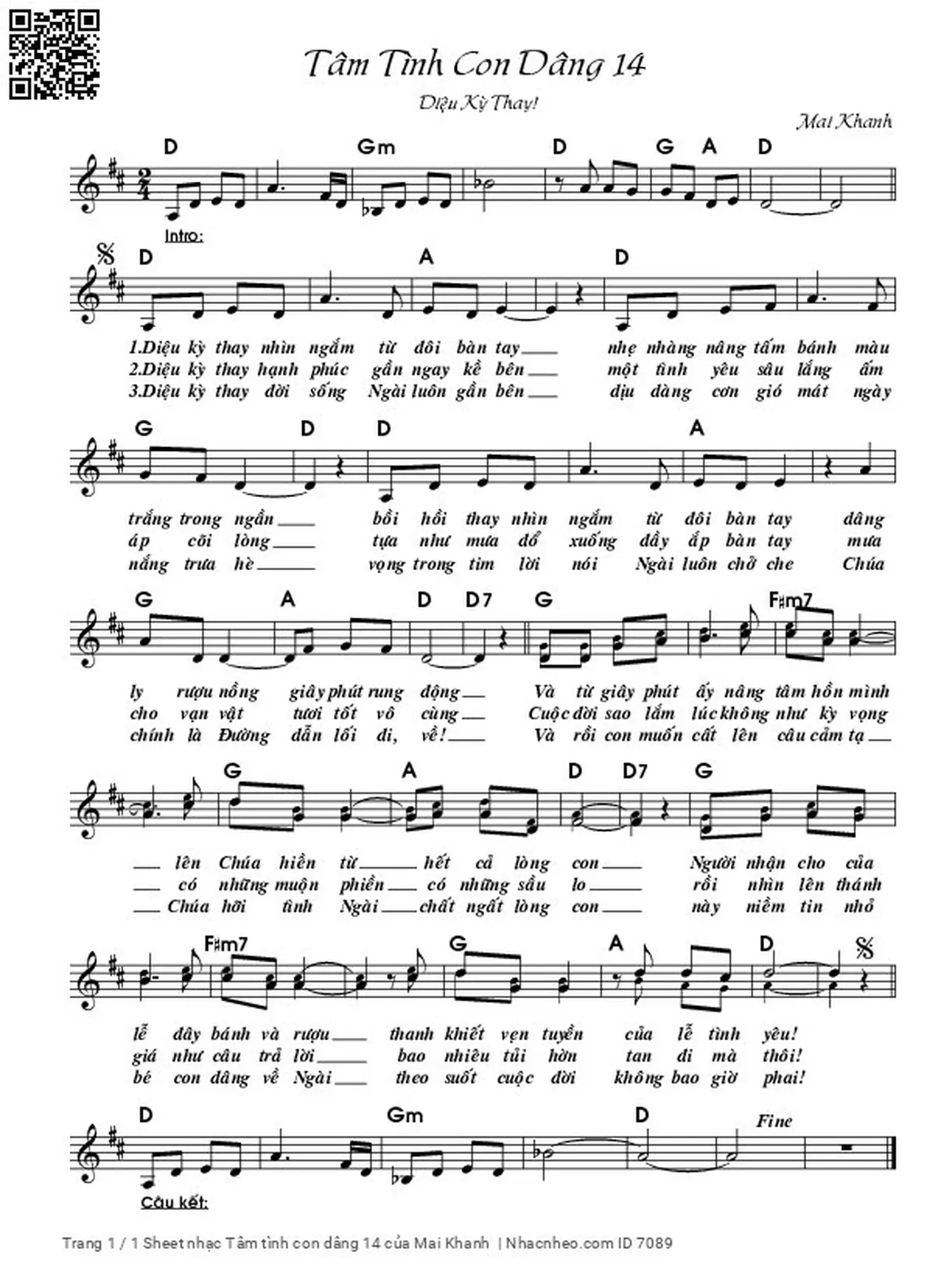 Mai Khanh Diệu kỳ thay nhìn ngắm từ đôi bàn tay [PDF] [Sheet] [Lyrics] [Mp4/Midi]