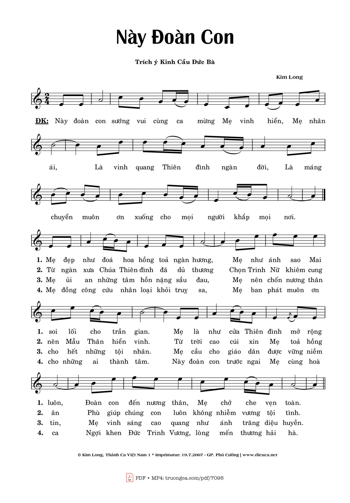 Kim Long Này đoàn con sướng vui cùng ca mừng Mẹ vinh hiển [PDF] [Sheet] [Lyrics] [Mp4/Midi]
