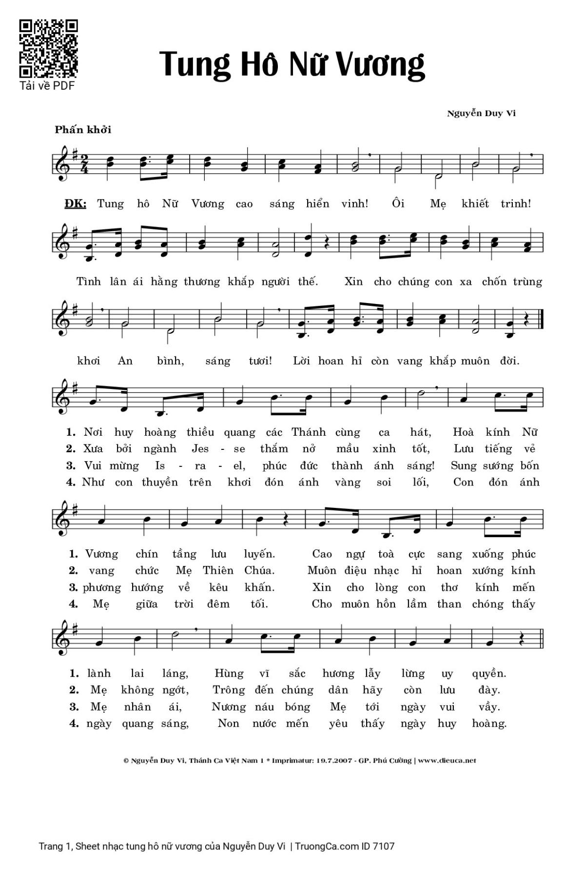 Nguyễn Duy Vi Tung hô Nữ Vương cao sáng hiển vinh Ôi Mẹ khiết trinh [PDF] [Sheet] [Lyrics] [Mp4/Midi]