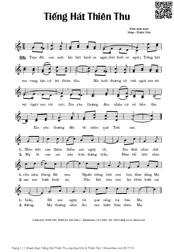Sheet PDF with the same name Tiếng Hát Thiên Thu: