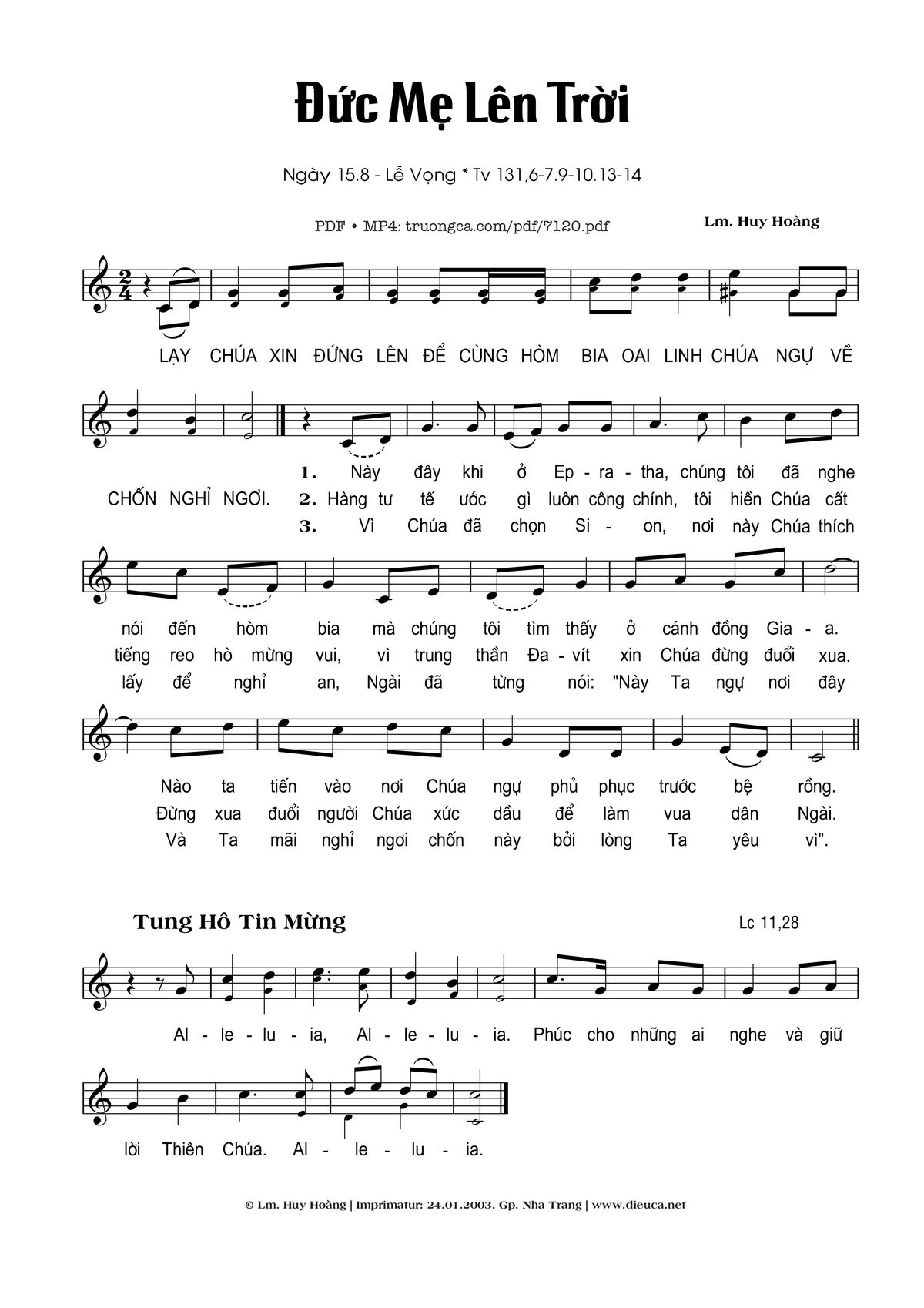 Huy Hoàng Thánh Vịnh Ca Imprimatur Gp Nha Trang [PDF] [Sheet] [Lyrics] [Mp4/Midi]