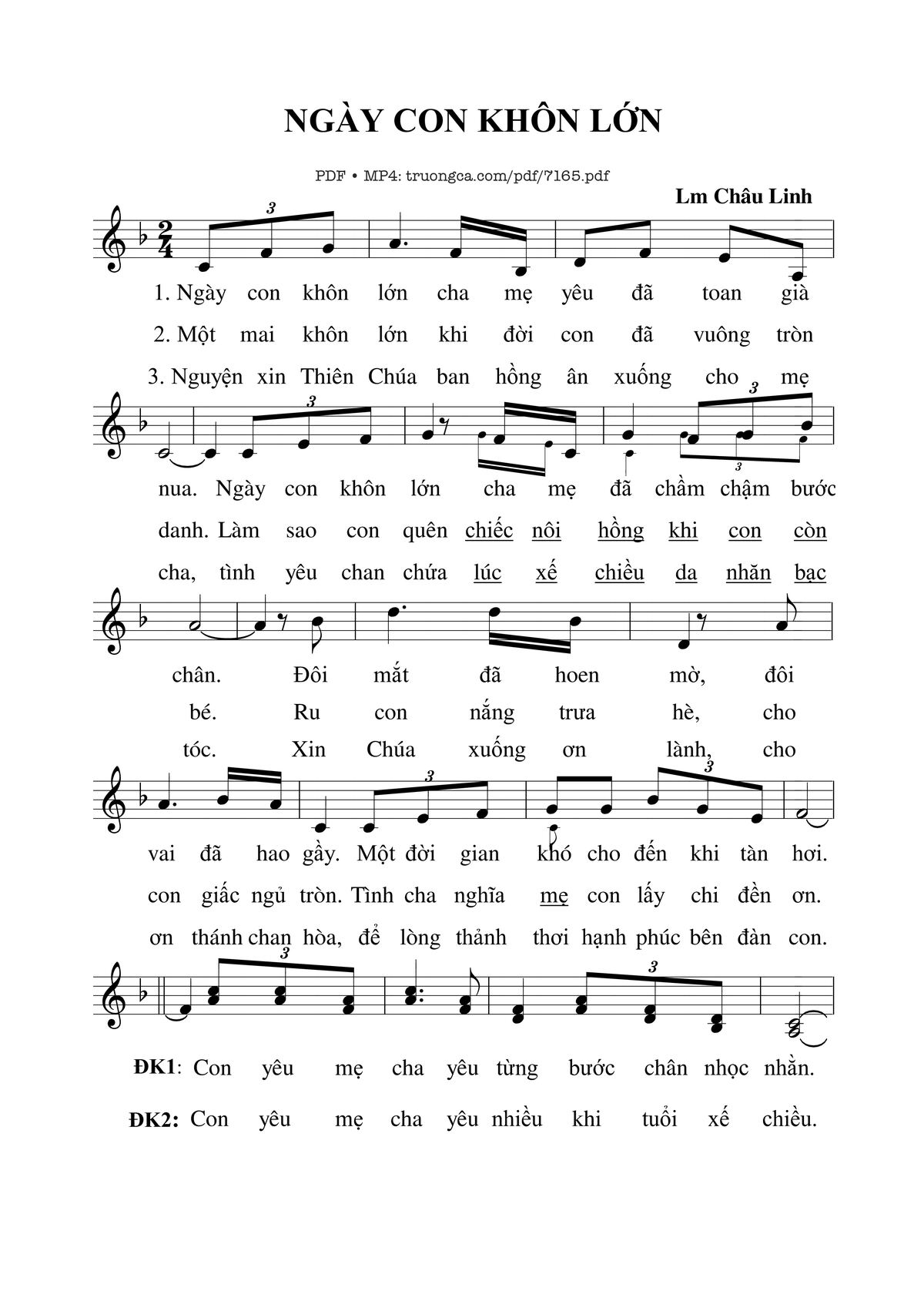 Châu Linh Ngày con khôn lớn cha mẹ yêu đã toan già nua [PDF] [Sheet] [Lyrics] [Mp4/Midi]