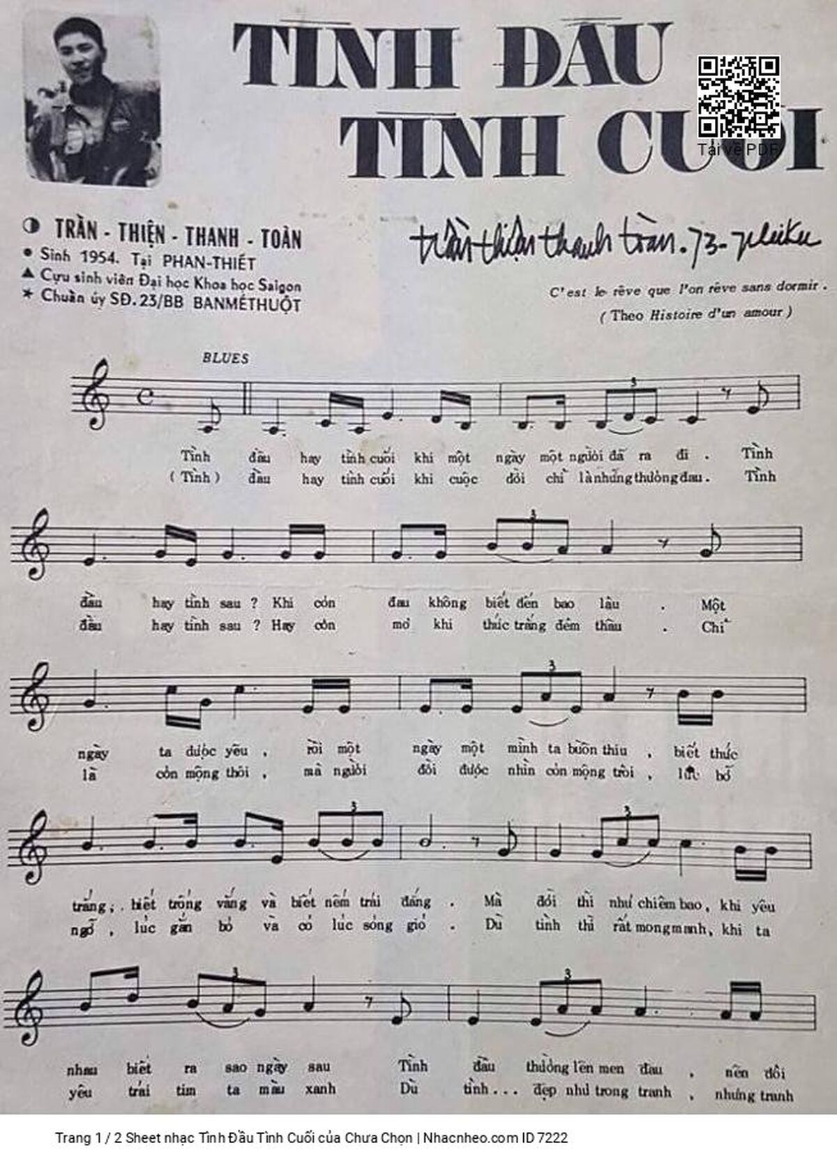 Page 1 of Sheet music PDF Tình Đầu Tình Cuối - Chưa Chọn