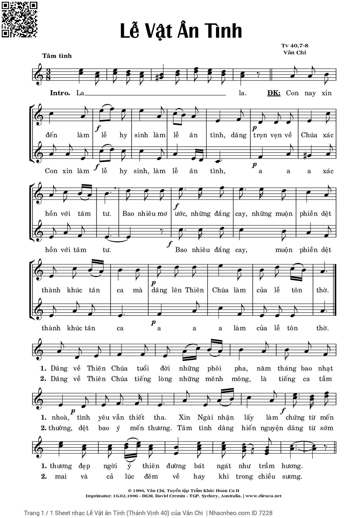 Văn Chi Con nay xin đến làm lễ hy sinh làm lễ ân tình [PDF] [Sheet] [Lyrics] [Mp4/Midi]