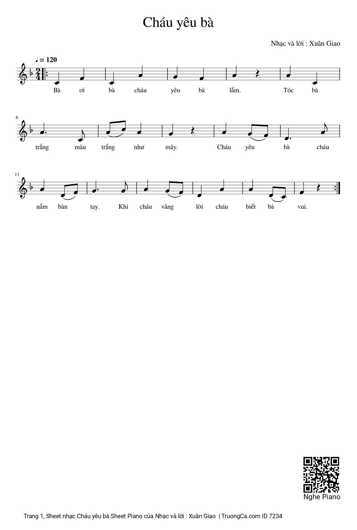 Xuân Giao Bà ơi bà cháu yêu bà lắm Tóc bà trắng [PDF] [Sheet] [Lyrics] [Mp4/Midi]