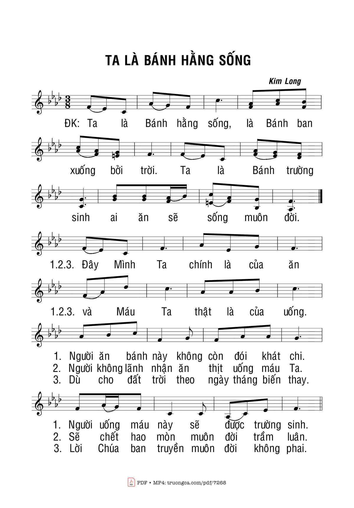 Kim Long Ta là bánh hằng sống là bánh ban xuống bởi trời [PDF] [Sheet] [Lyrics] [Mp4/Midi]