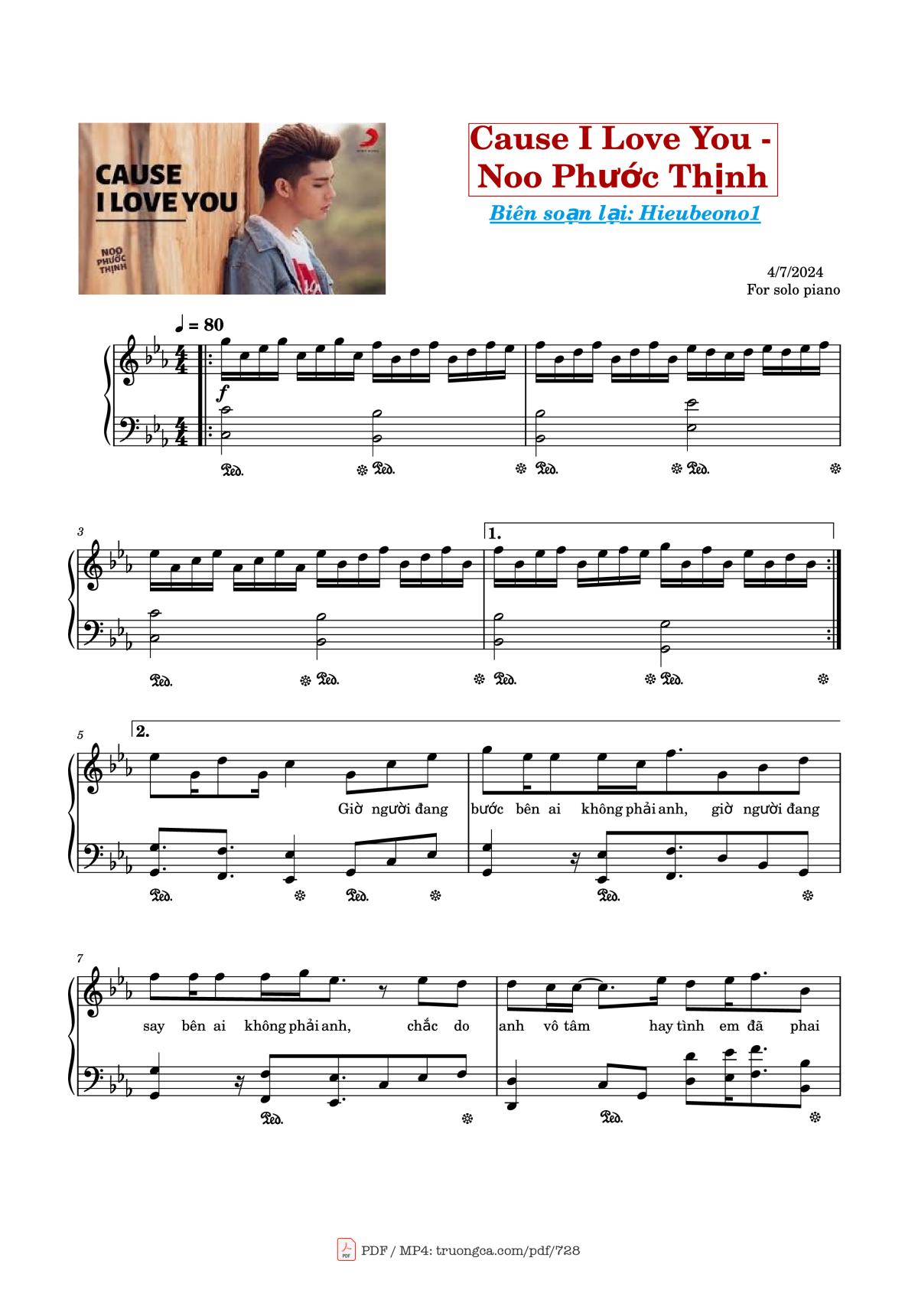 The Videos/audios Cause I love you by Đỗ Hiếu were embed from Youtube, Musescore or the other 3rd links. Videos are subject to 3rd's copyright control and may be removed by YouTube's copyright rules and 3rd's policies or maybe included advertisements. If you cannot access to these songs, this mean that have been removed.