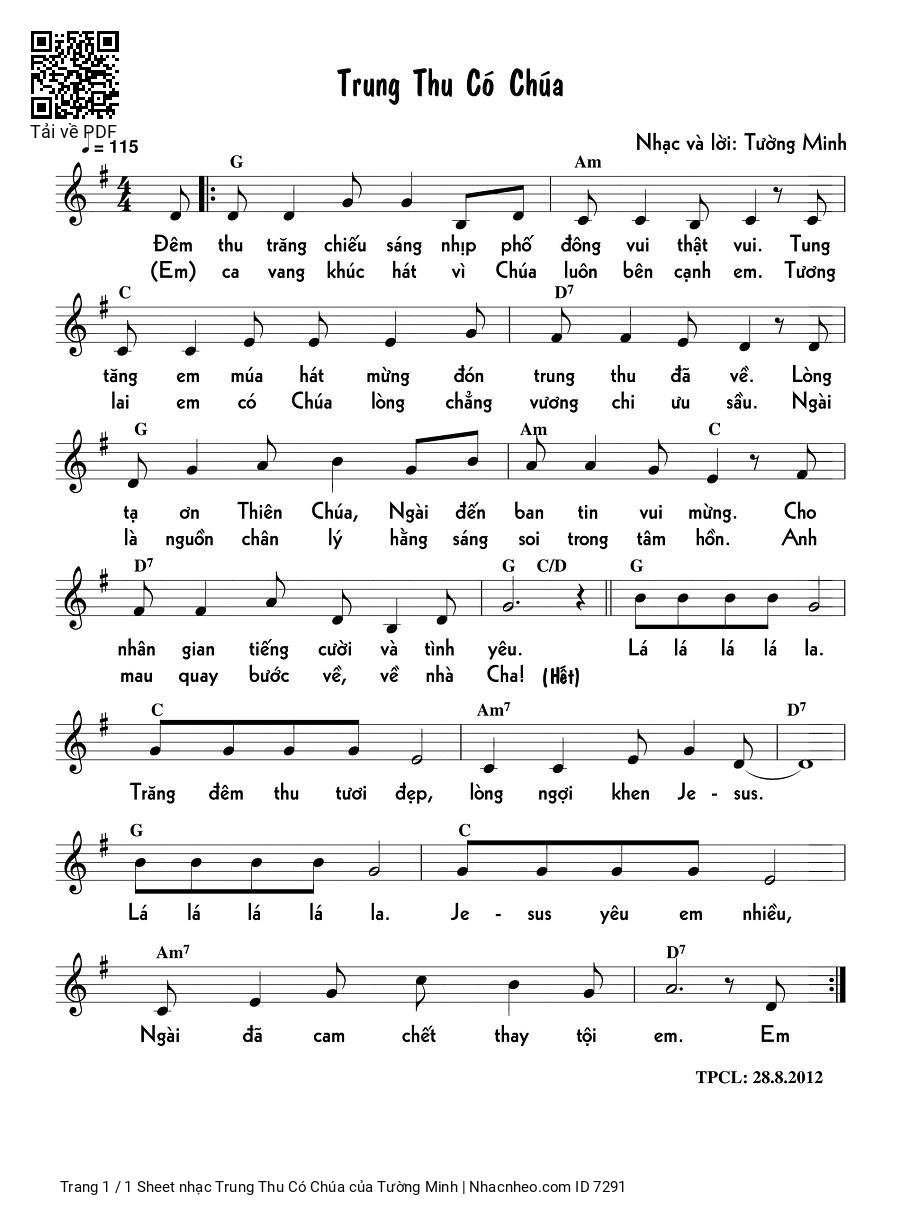 Page 1 of Sheet music PDF Trung Thu Có Chúa - Tường Minh