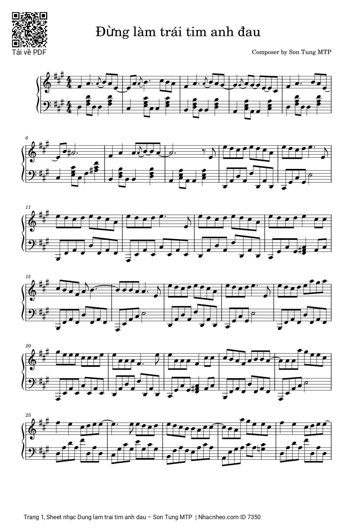 Sheet PDF with the same name Đừng làm trái tim anh đau Piano: